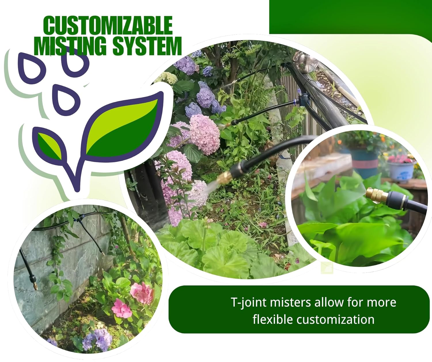 - 3.The flexible tubing holds its shape, allowing precise misting coverage in any direction. Ideal for garden irrigation, patio cooling, and more—while minimizing water waste through efficient spray control.