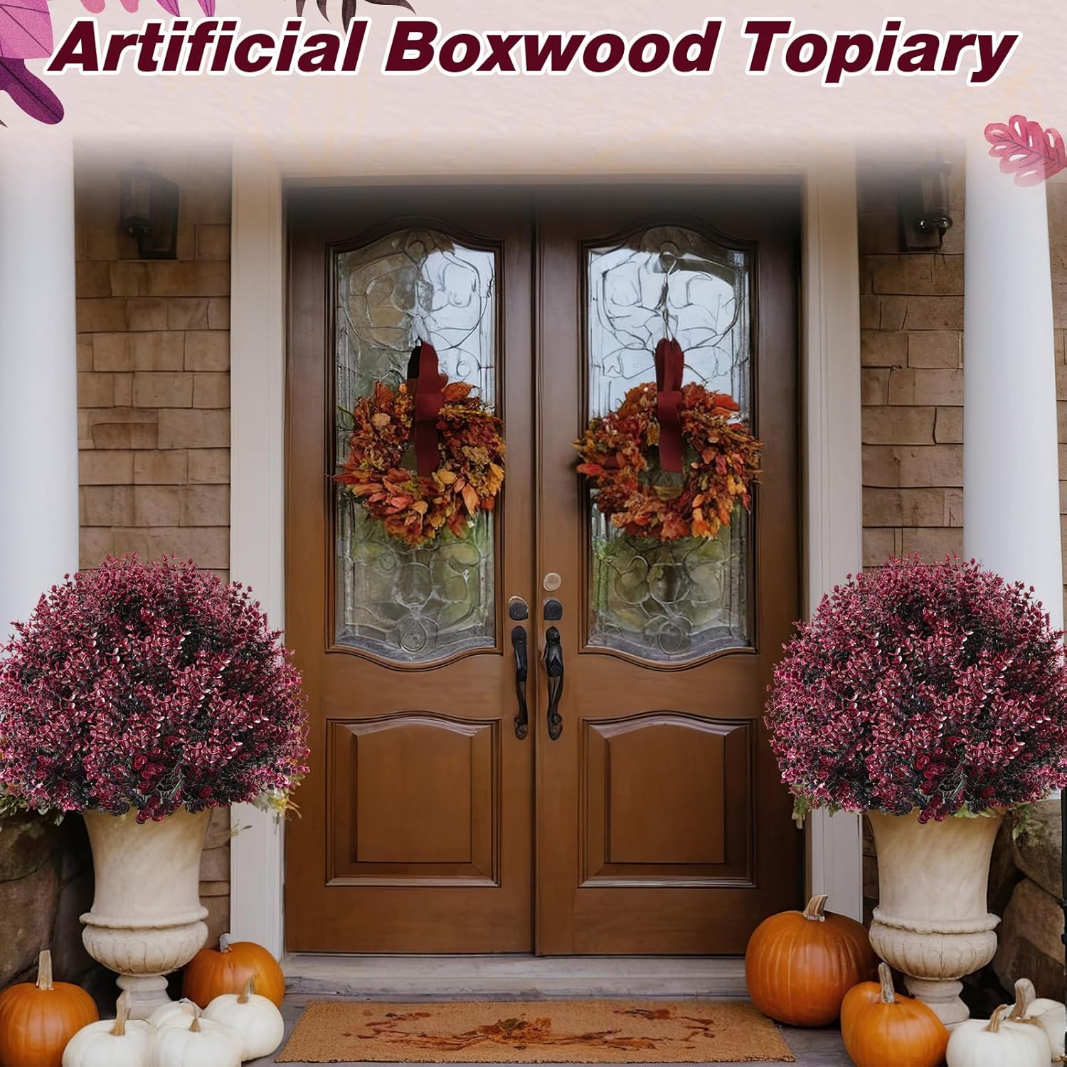 - Uv Resistance: the fake bushes boxwood balls are UV resistant, will not fade in rain and sun, and will not deform under winds; This provides a lasting beauty, sturdy and long lasting, whether indoors or outdoors, such as garden, veranda, balcony, patio, front porch