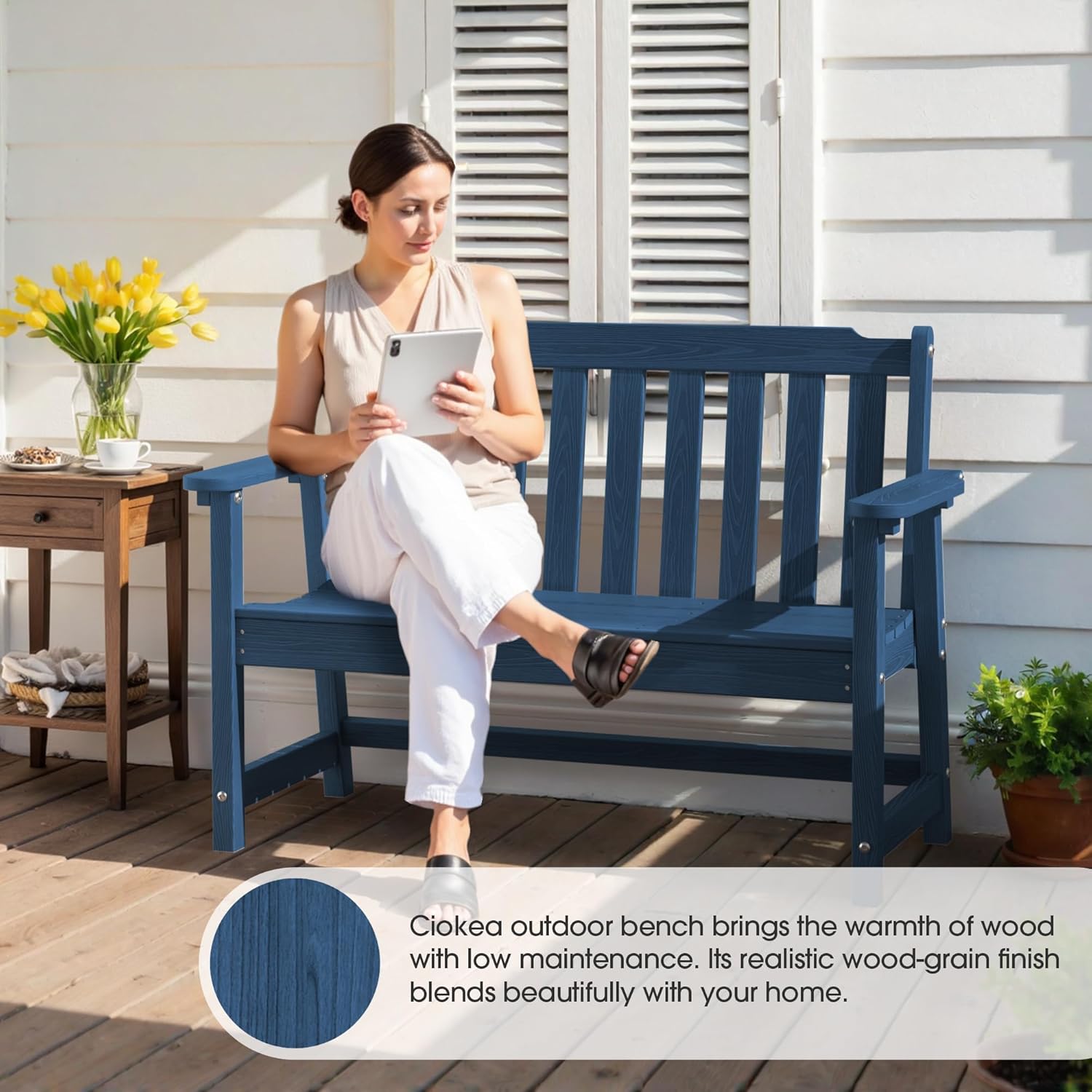 Ciokea 46" Heavy Duty Outdoor Bench Set of 2, HDPE Weatherproof Garden Bench, 2-Person Memorial Benches with 660 Lbs, Waterproof Patio Porch Benches for Outside Business Office Backyard, Navy Blue