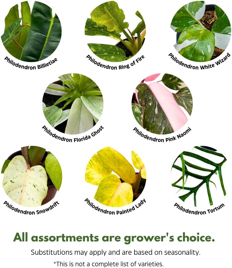 BubbleBlooms Rare Variegated Philodendron Assortment in 4 inch Pots Set of 3
