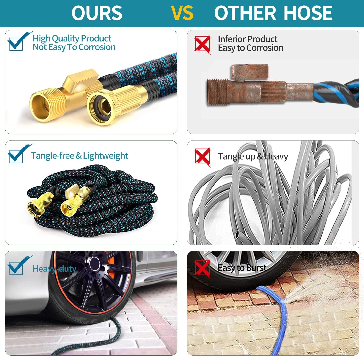 50 ft Expandable Garden Hose with 10 Function Nozzle Sprayer, Lightweight Flexible Water Hose with Durable Collapsible Latex Core & Solid Brass Fittings, 50ft Retractable Stretch Hose(Black Blue)