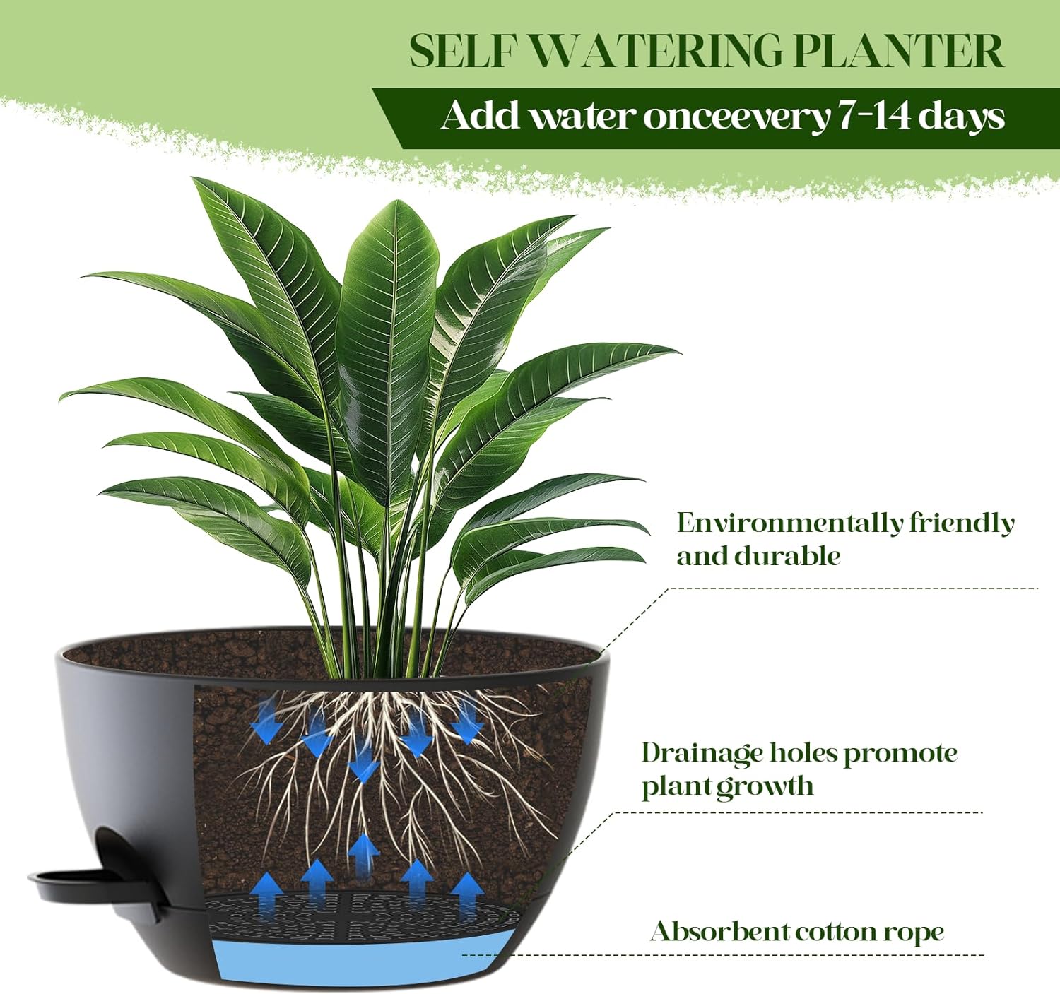 - 💧 EASY WATER MANAGEMENT: Patented self-watering system delivers water to the roots for up to 2 weeks! Includes water dispenser for easy filling and removable reservoir for easy cleaning.