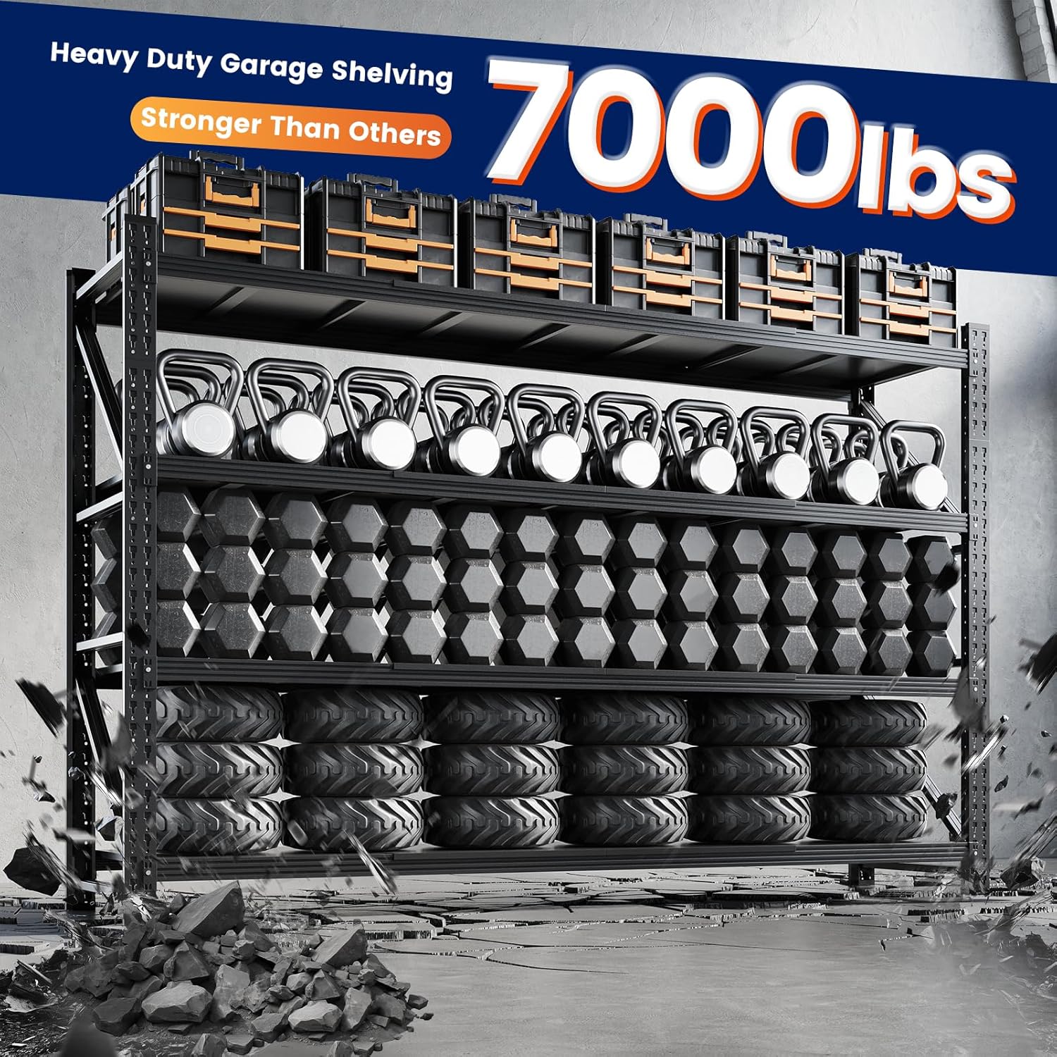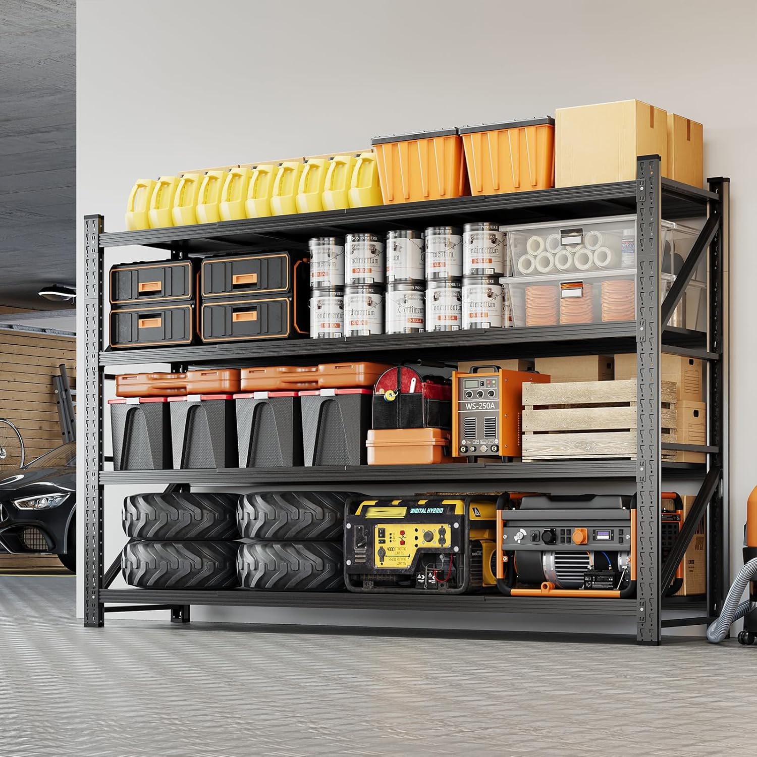 Yizosh 79" W Metal Garage Storage Shelves,7000LBS Heavy Duty 4-Shelf Adjustable Steel Organization Shelving,Utility Rack Shelf,79" W x 24" D x 79" H for Basement,Warehouse,Industrial