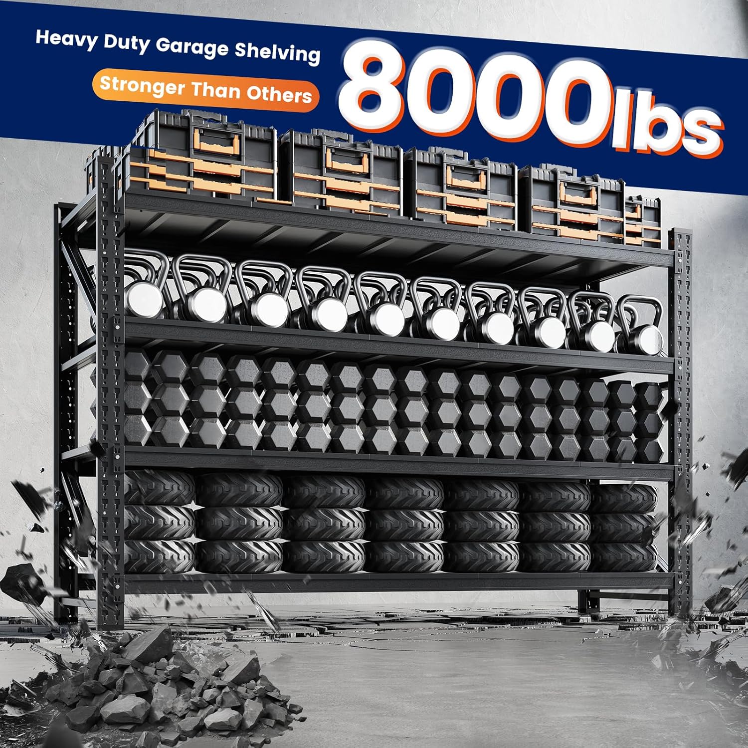 - 【Sturdy Design】The garage shlelving units reinforced diagonal braces designs,its could evenly distribute the weight,features reinforcing ribs for added strength,ensuring strong stability and resistance to deformation.