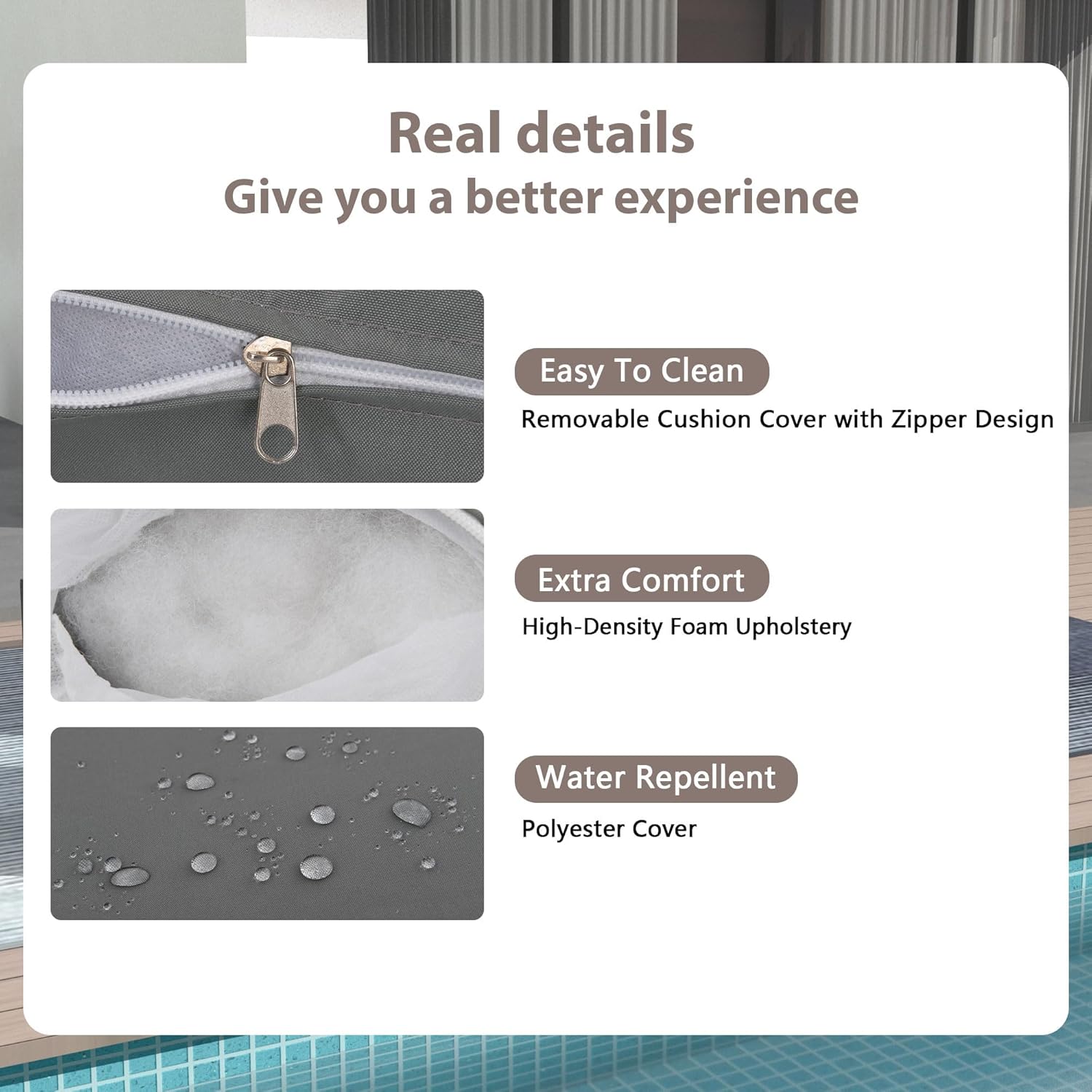 - 【Modular Design & Deep Seating】 Freely arrange arm/armless chairs to fit any space (patio, poolside, garden). Extra-thick cushions with removable covers for easy cleaning