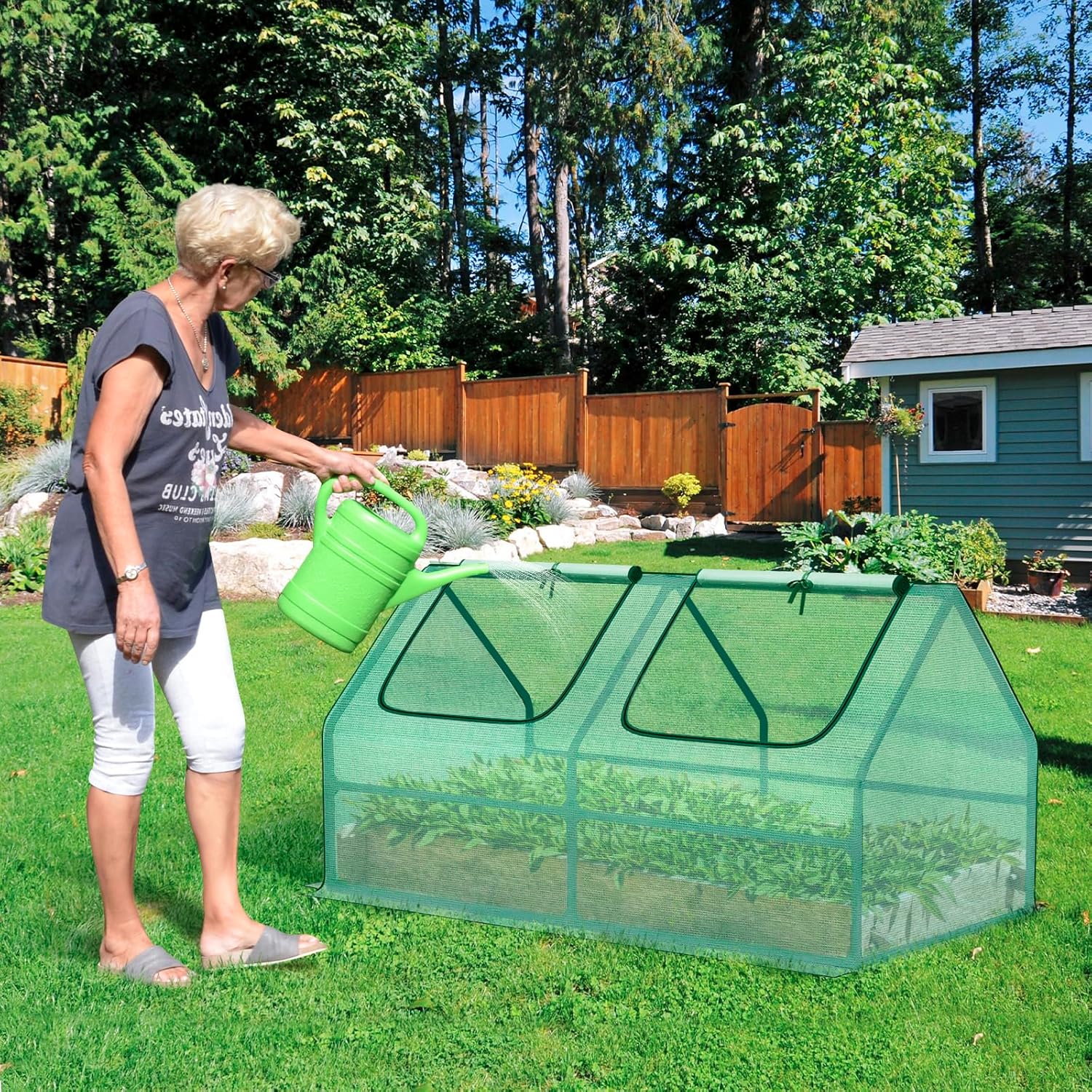 BPS 4x2x2 ft Mini Greenhouse with Green PE Cover UV-Protected Roll-Up Zipper Windows, Ideal for Indoor or Outdoor Use on Raised Garden Beds