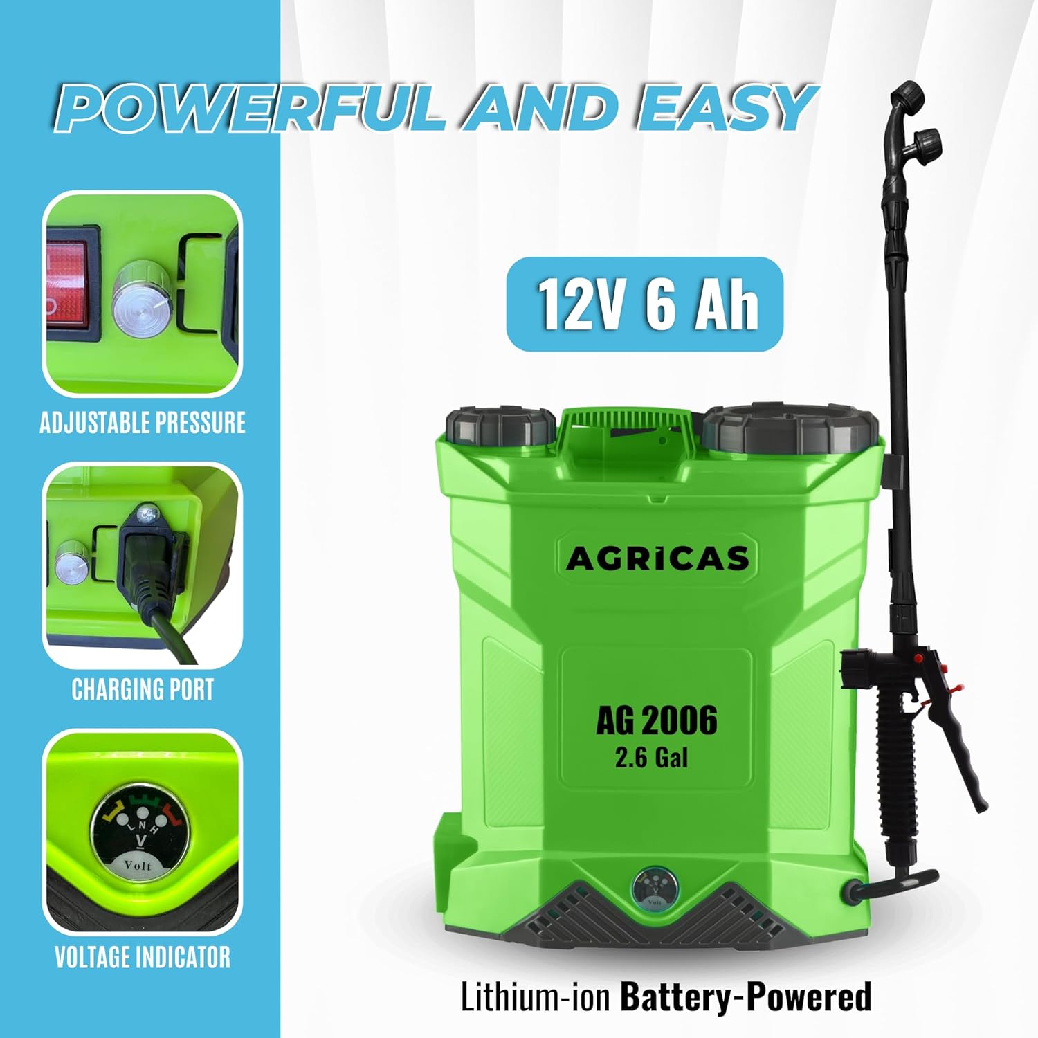 - Multifunctional: The AGRICAS AG2006 2.6-gallon battery-powered backpack sprayer is a versatile tool designed to handle various tasks such as weed control, cleaning, and more. With its 70 PSI cutoff pressure, this sprayer can tackle any job with ease.