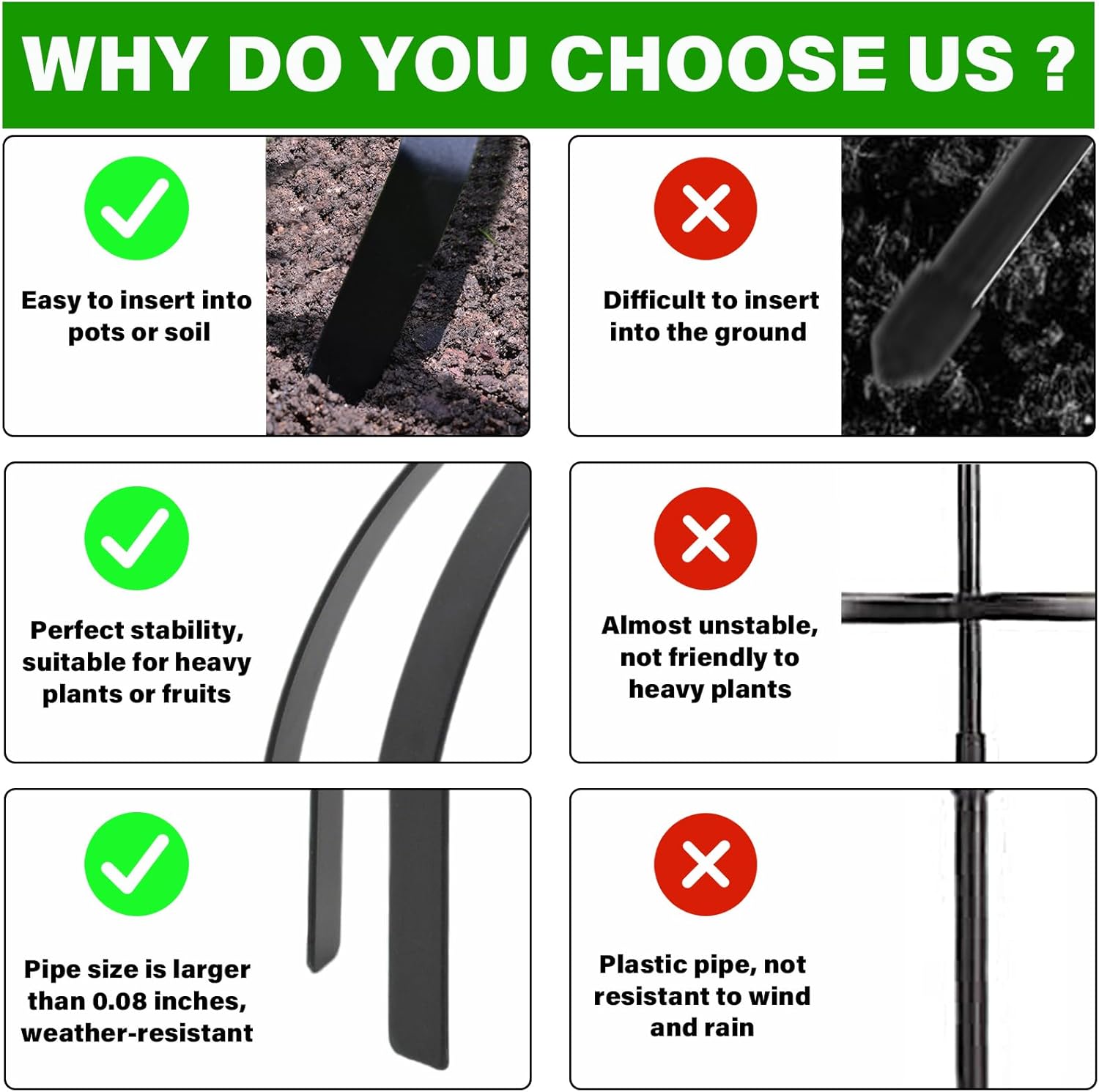 - User-Friendly Installation and Storage: Transform your gardening experience with our hassle-free assembly process, utilizing the included top nuts. Our garden trellises can be easily disassembled for compact storage when not in use, making them the ideal solution for space-conscious gardeners.