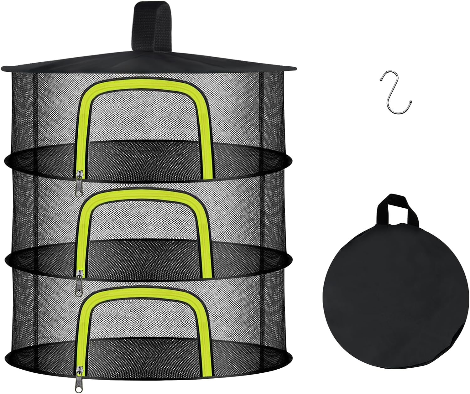 - Herb Drying Kit: Purchasing a 3-layer drying rack will provide an additional S hook as a gift. You can use the included hook to place it where you want to use it, enhancing the experience of gardening, kitchen storage, and outdoor camping. When not in use, it can be folded and stored without taking up space