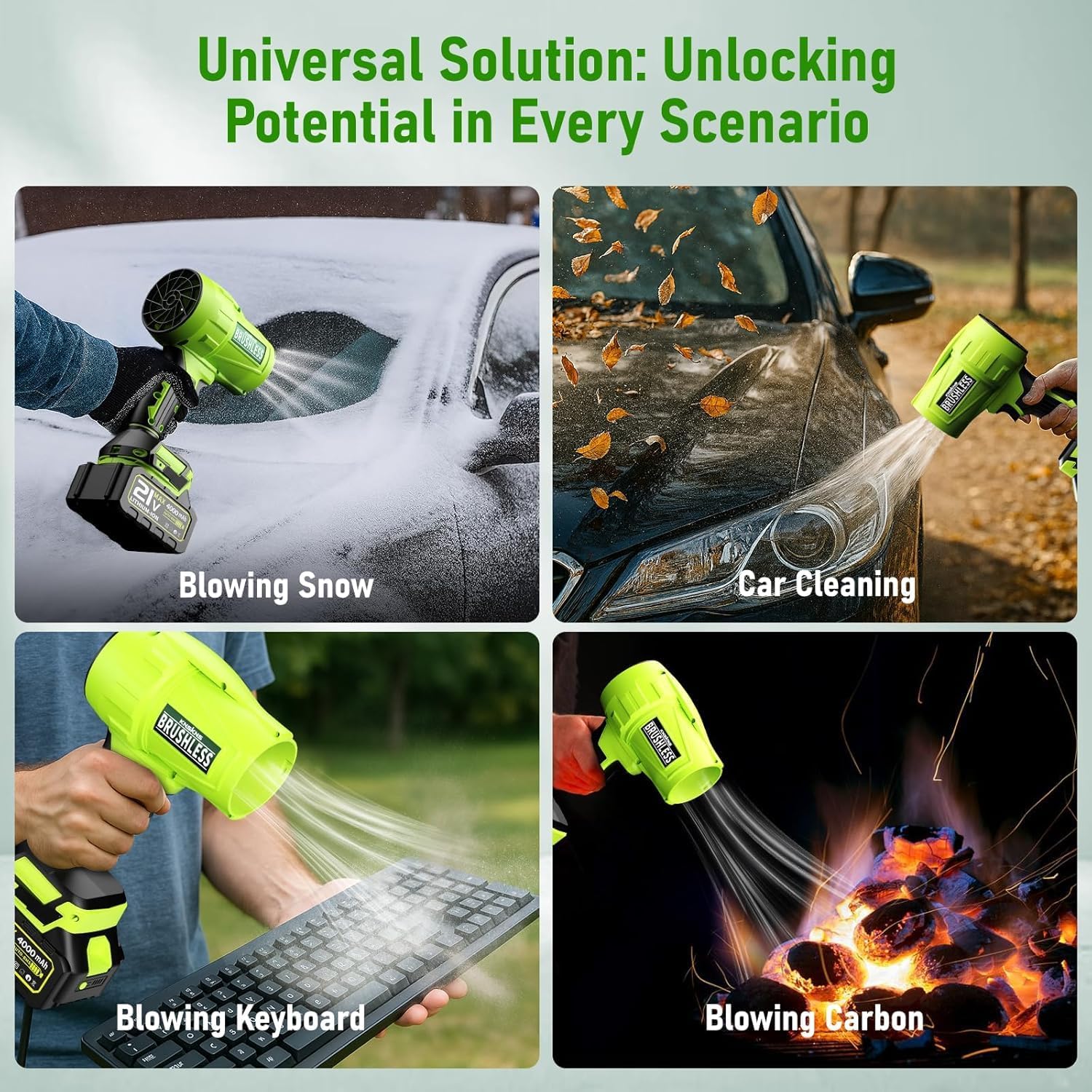 - 【Two Batteries, Zero Interruptions】 Equipped with two 21V 4000mAh batteries, the leaf blower cordless can run for up to 50 minutes. The power display shows remaining charge, and the fast charger gets you back to work quickly. No cords, no hassle.