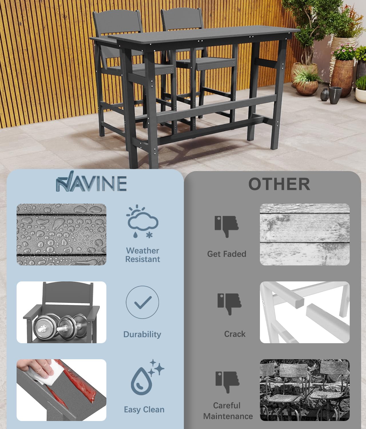 - Durable Build: Crafted from premium, recyclable High-Density Polyethylene (HDPE), this patio bar set can withstand intense sunlight, snowy winters, rain, and wind, and is not affected by weather conditions. It is also weather-resistant, fade-resistant, sturdy and durable, ensuring that the outdoor table and chairs can be used stably for a long time.