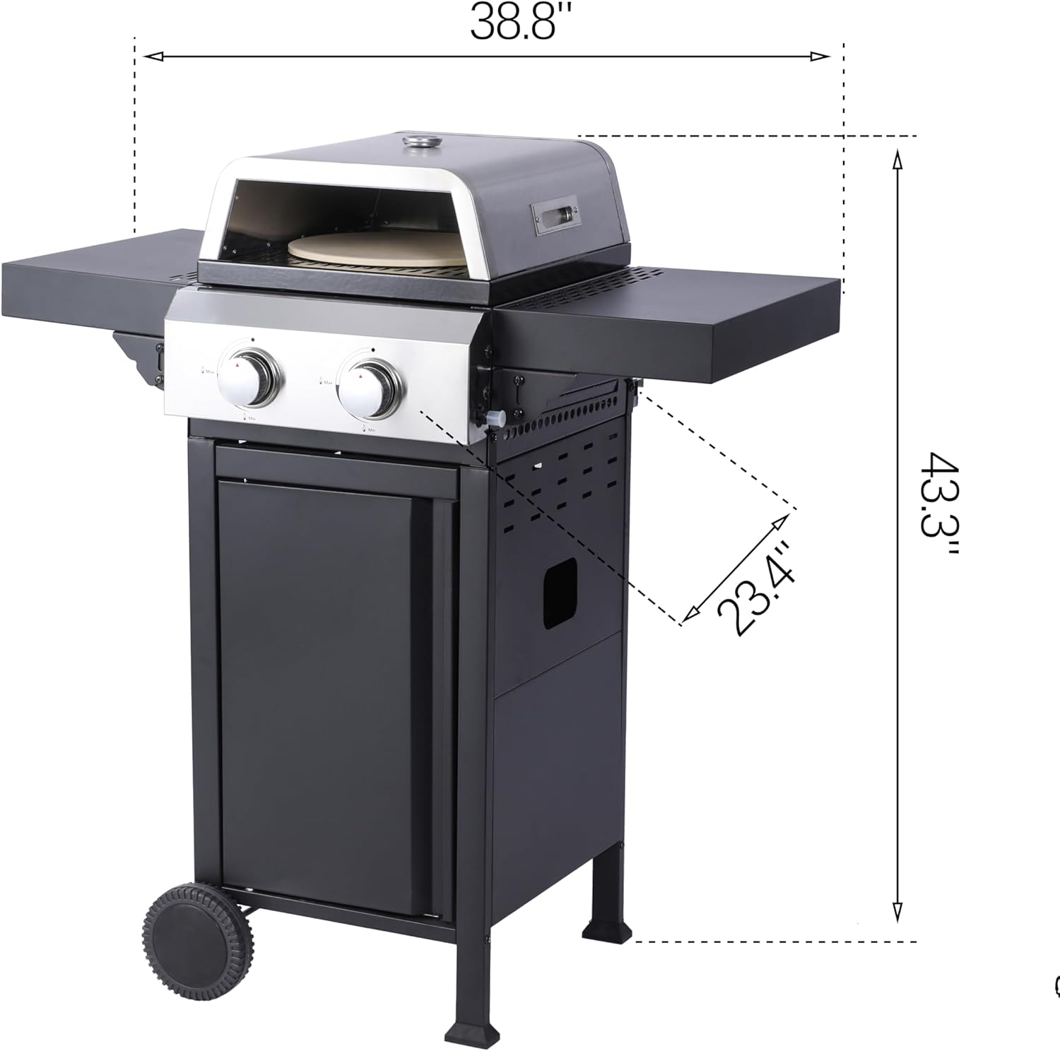 2-Burner Propane Gas BBQ Grill with Pizza Box, 24,600 BTU Output, Wire Enamel Grids, Foldable Side Table and Hanging Basket, Stainless Steel Patio Grill