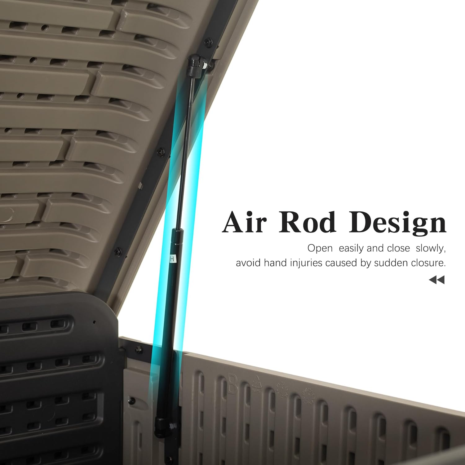 - Hydraulic Air Rod Design - Featuring two hydraulic air rods, domi patio storage box allows for effortless opening and slow, controlled closing, minimizing the risk of pinched fingers and ensuring safe and smooth operation.