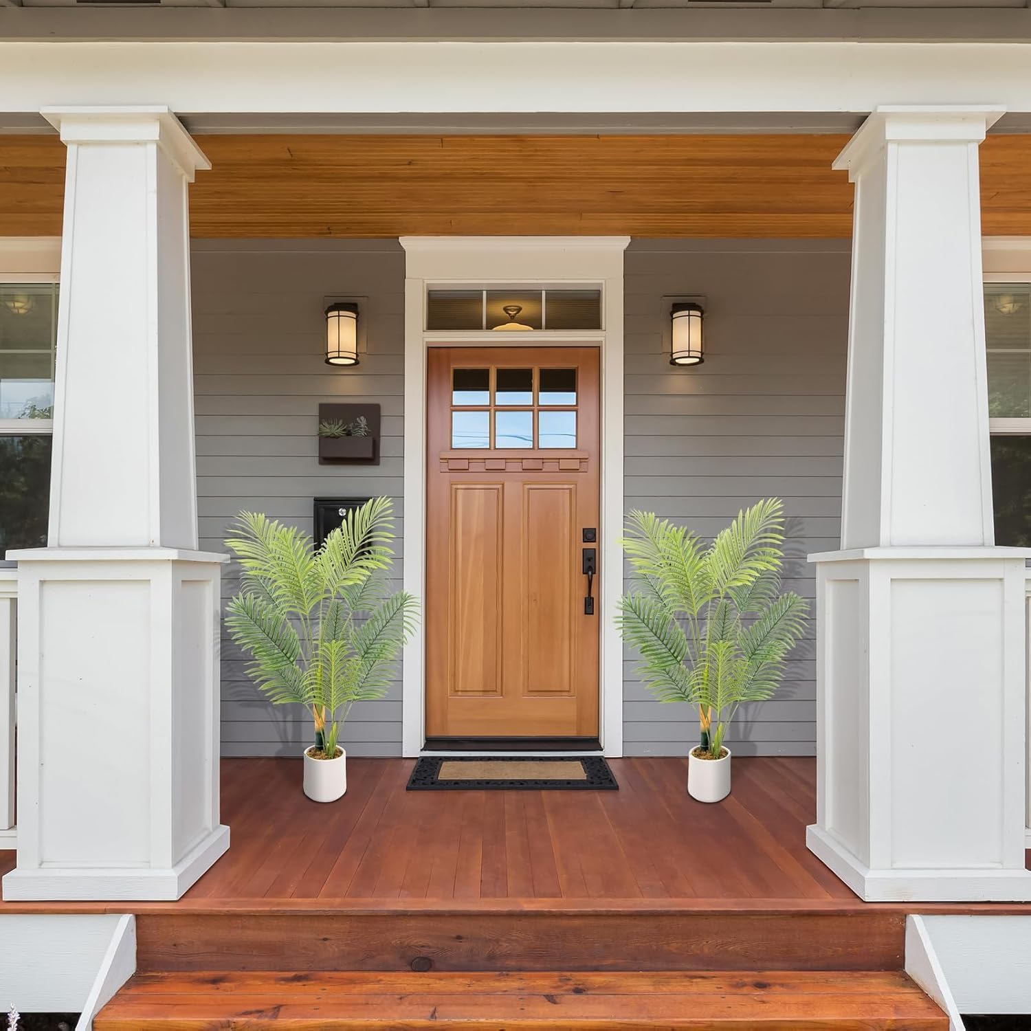- 🌿 Ultra-Realistic & Adjustable Design – Bend flexible fronds to craft your lush paradise! Our fake palm tree mimics natural texture with silk-green leaves, lifelike trunk grooves. Ideal for front porch decor or outdoor decor, its weather-resistant materials stay vibrant indoors or by the pool.