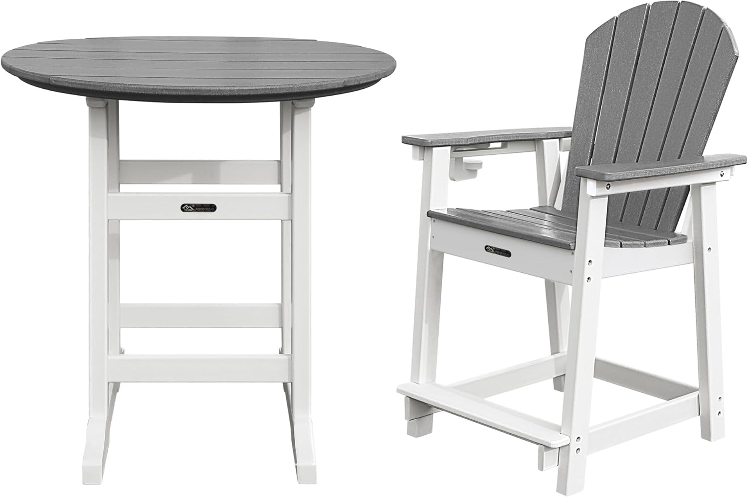 Patio Bar Tables, Outdoor Bar Table, Tall Adirondack Chairs Patio Bar Tables Set (Gray, 2 PCS Set)