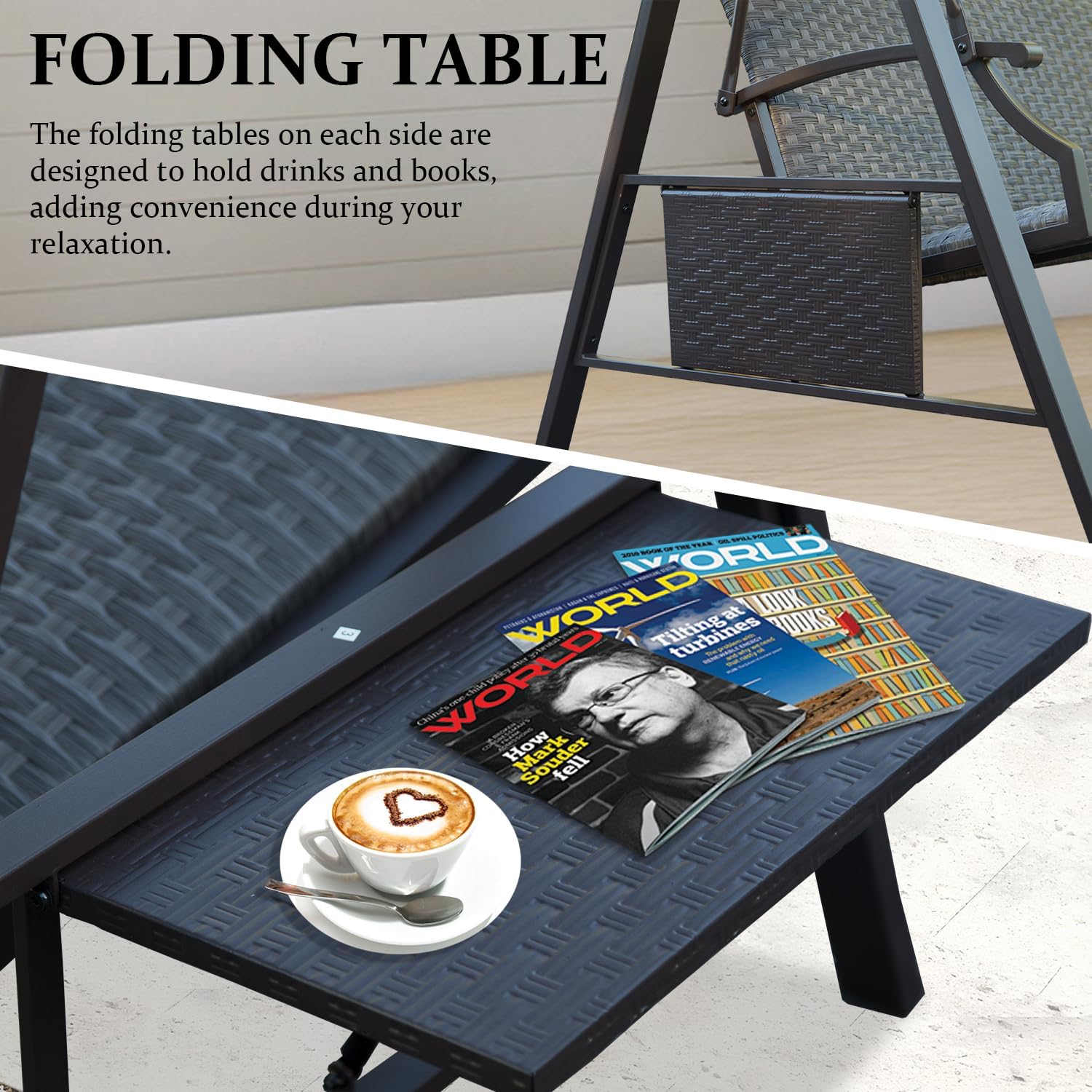 - Foldable Metal Side Table: This rattan swing chair comes with 2 convenient cup holders, perfect for holding food, your phone, or magazines.