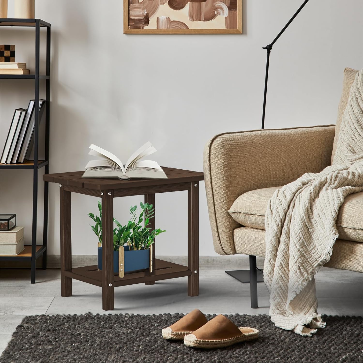 Adirondack Square Side Table - 18.4" Large Panel HDPE Outdoor End Table - Weatherproof, Rustproof & Low Maintenance for Patio, Lawn, Pool, Indoor Use,Coffee