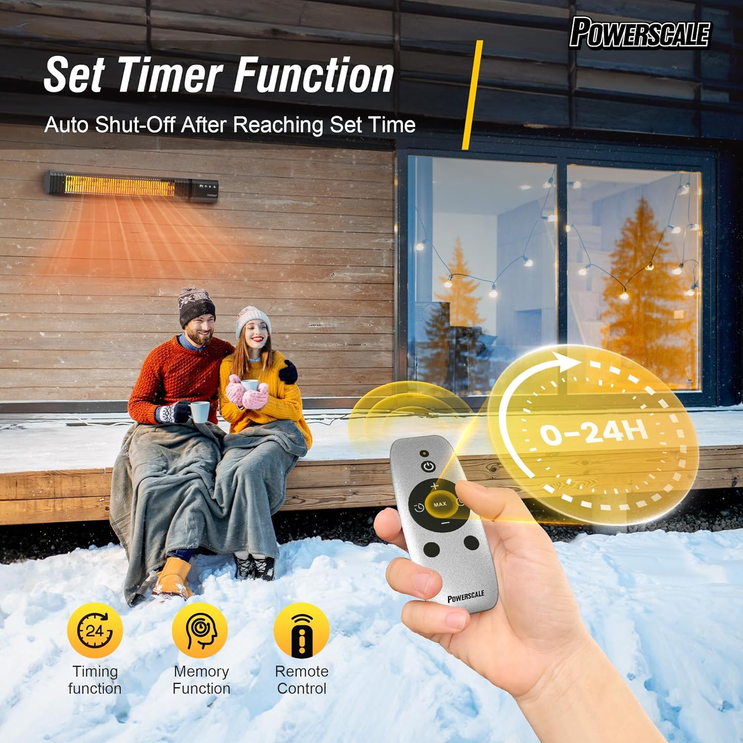 - Electric Patio Heater with Personalized Comfort – Choose from 4 heat levels and set a 24-hour timer with either the remote control or the built-in touchscreen panel. This infrared space heater works as a heater outdoor for patio, a porch heater for balconies, or an electric garage heater for workshops, giving you flexible warmth whenever and wherever you need it