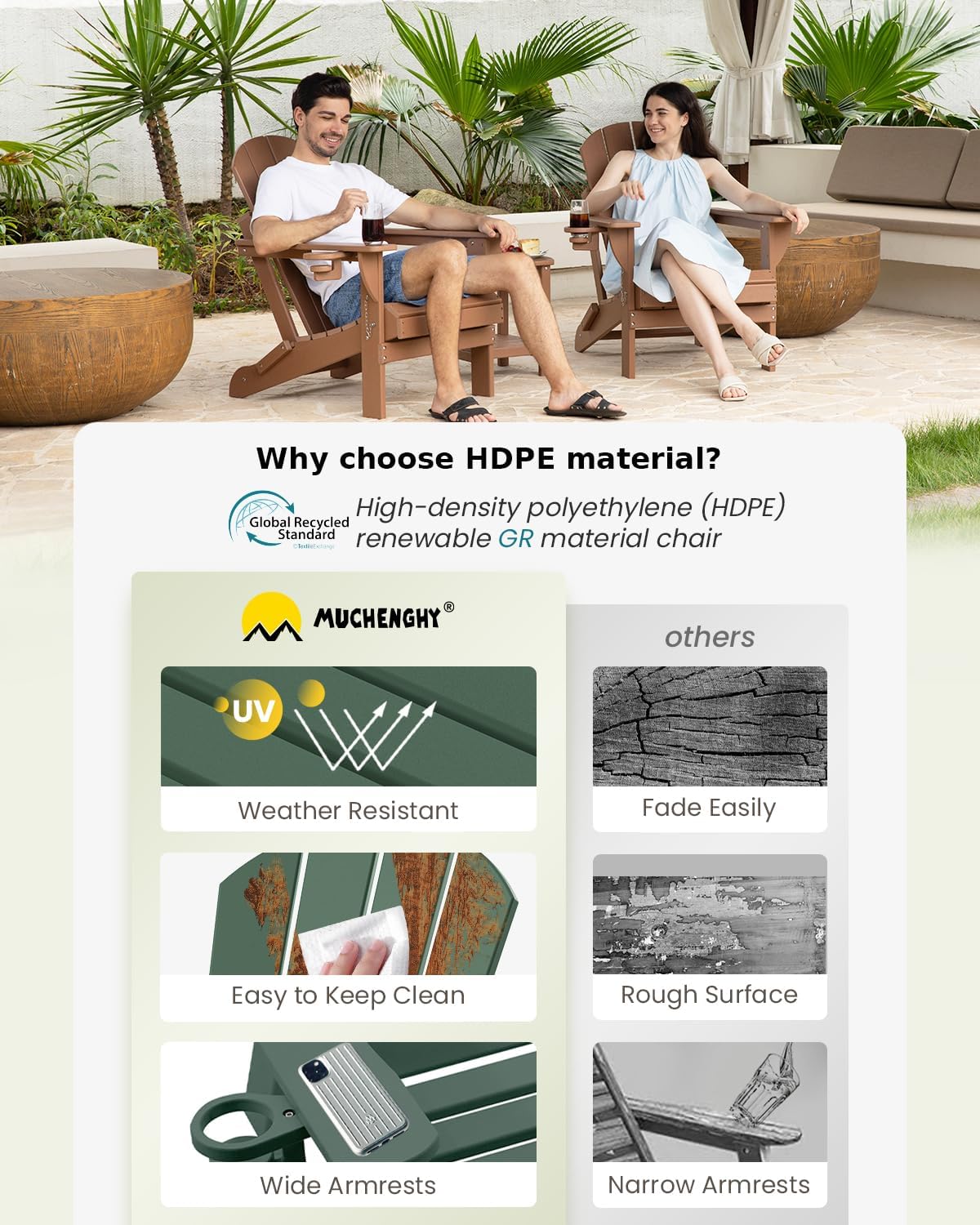 MUCHENGHY Folding Adirondack Chairs Set of 2, Patio Chairs, Lawn Chairs, Outdoor Chairs, Adirondack Chair Plastic, Fire Pit Chairs, Weather Resistant with Cup Holder for Deck, Backyard, Garden(Green)