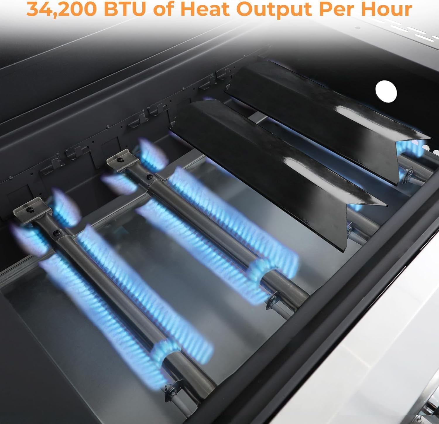 - 【Quick Start for Easy Grilling】Ignite this propane grill's 4 stainless steel burners, boasting 34,200 BTU/hr. Just push & turn the knob, the grilling begins, the built-in thermometer (100°F-800°F) lets you monitor the cooking temperature, ensuring great results every time