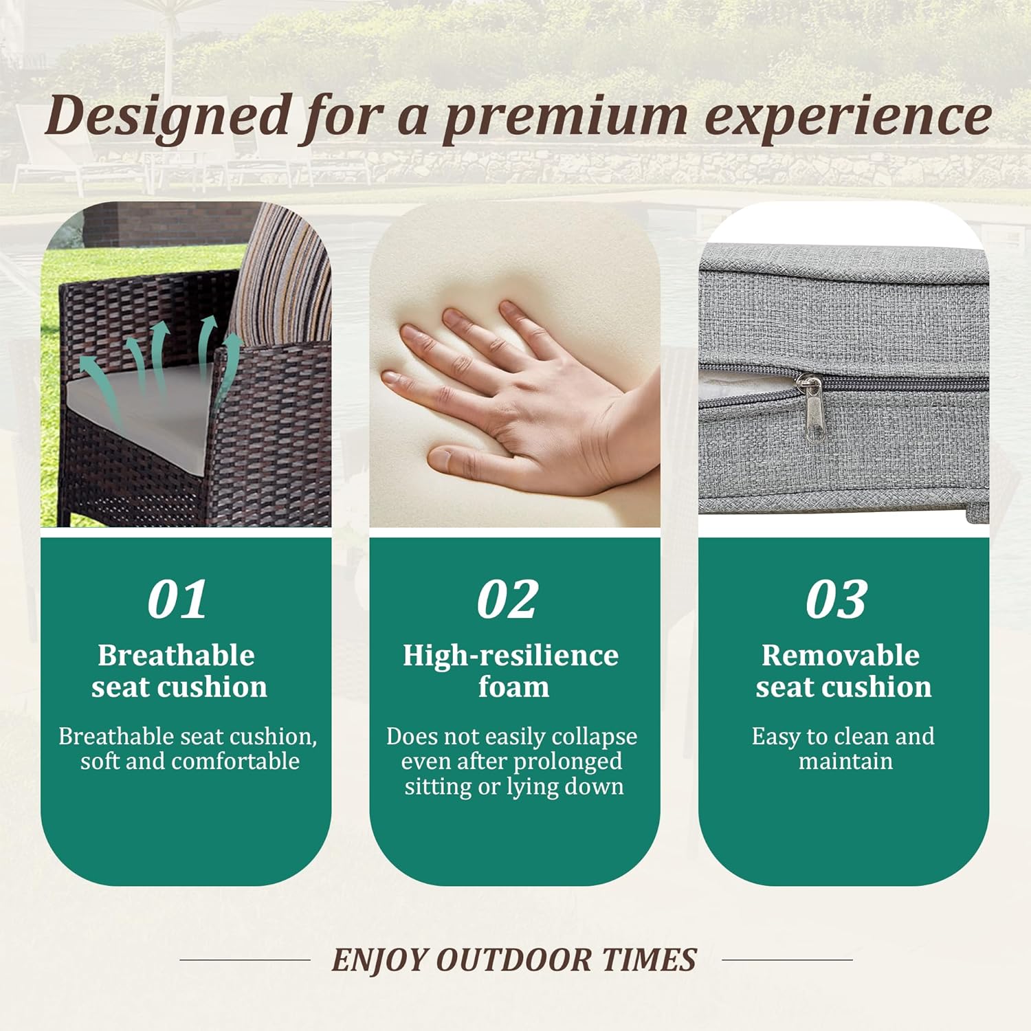 - 【Complete 4-Piece Set】 Includes 7 main furniture (1 Coffee Table + 3 Chairs + 3 Seat Cushions). Everything needed for instant outdoor living