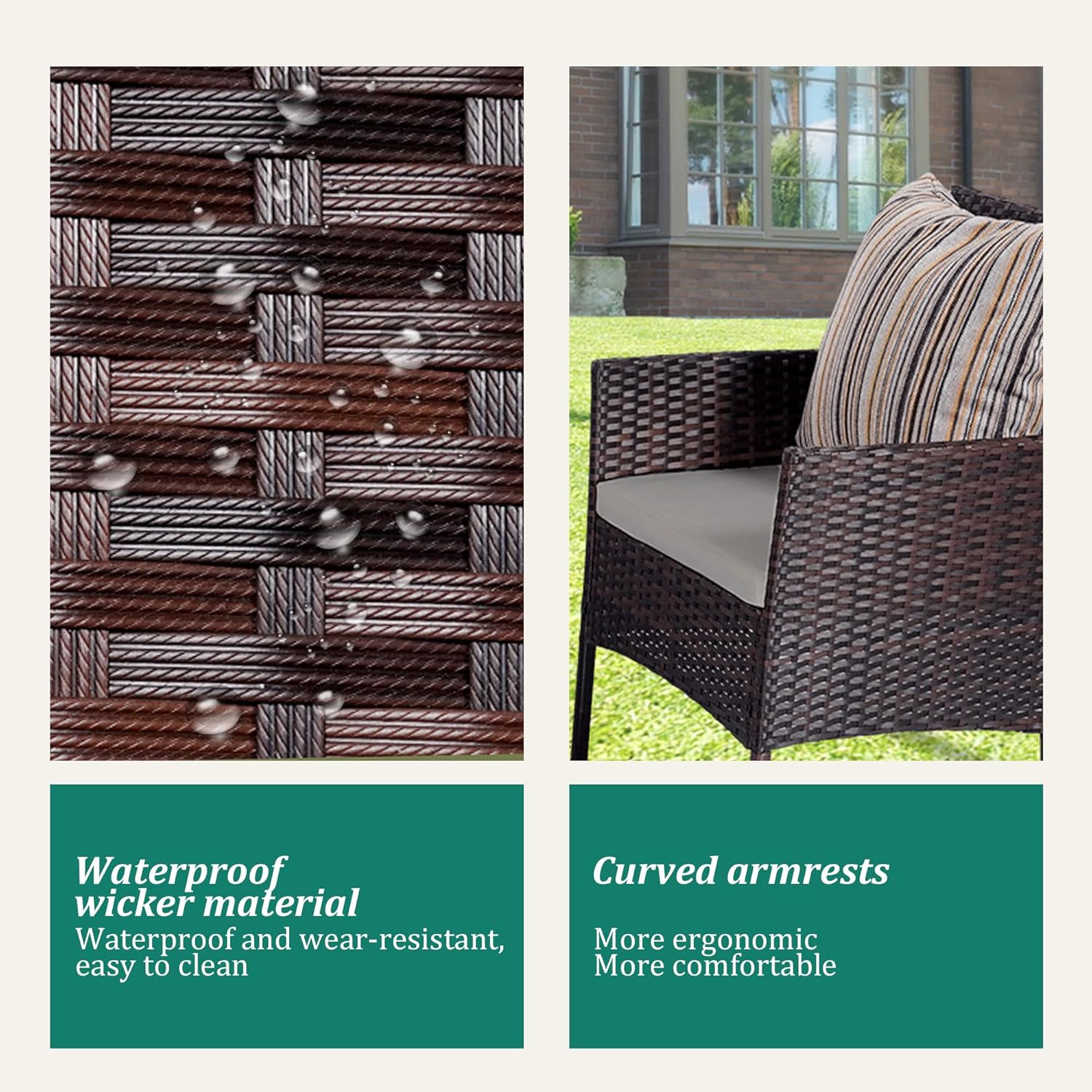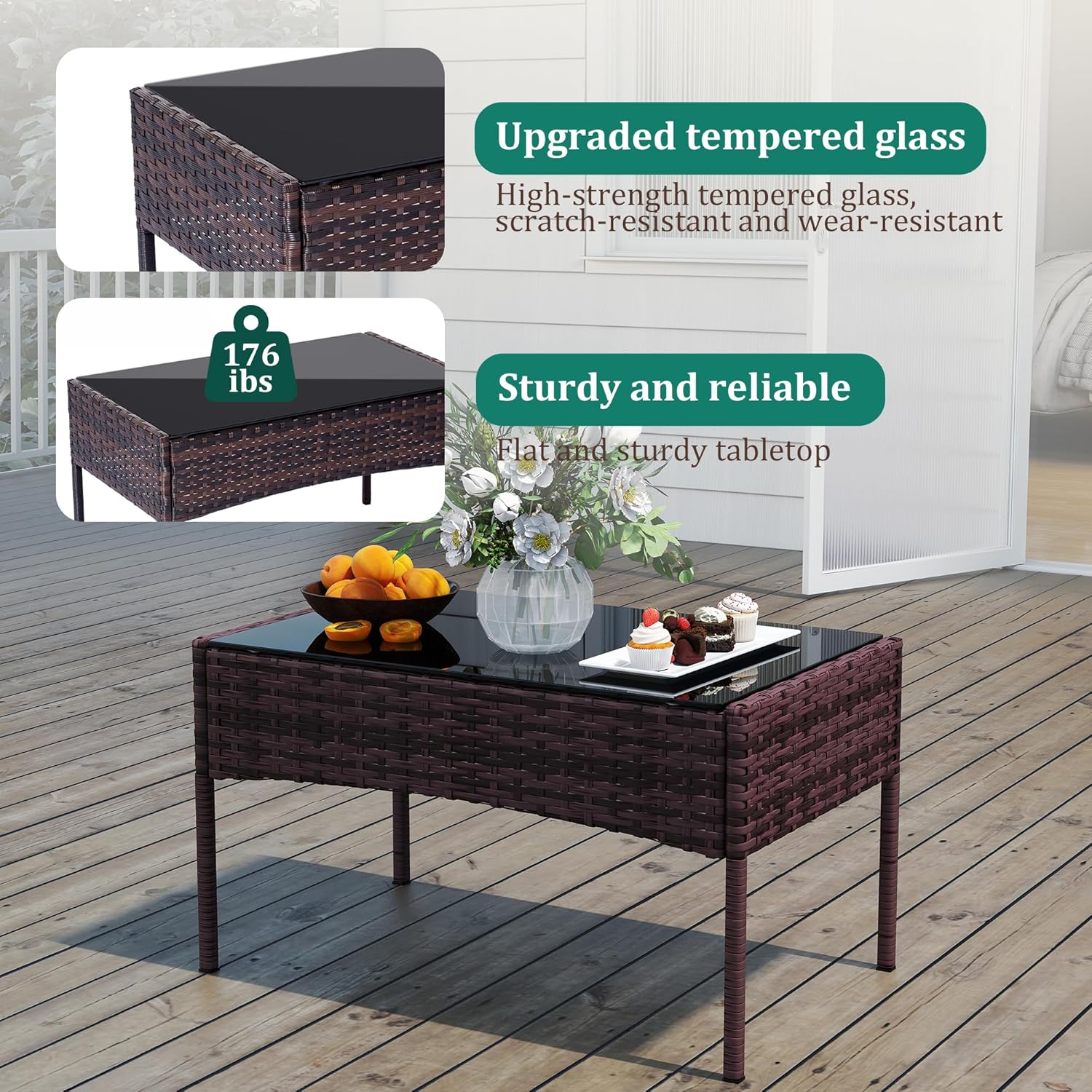4 Piece Patio Furniture Set - Outdoor Conversation Sets with Coffee Table, Rattan Chair Set for Garden/Poolside, Brown/Grey
