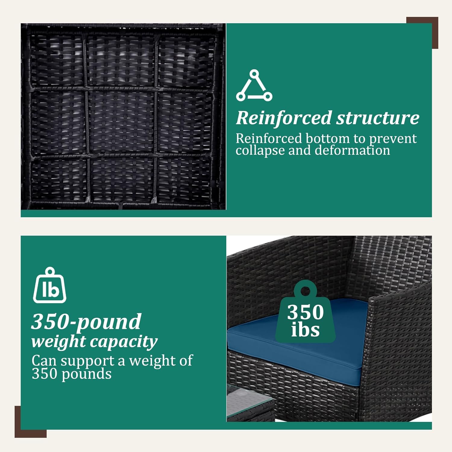 3 Piece Patio Furniture Set - Outdoor Conversation Sets with Coffee Table, Rattan Chair Set for Garden/Poolside, Coffee/Blue