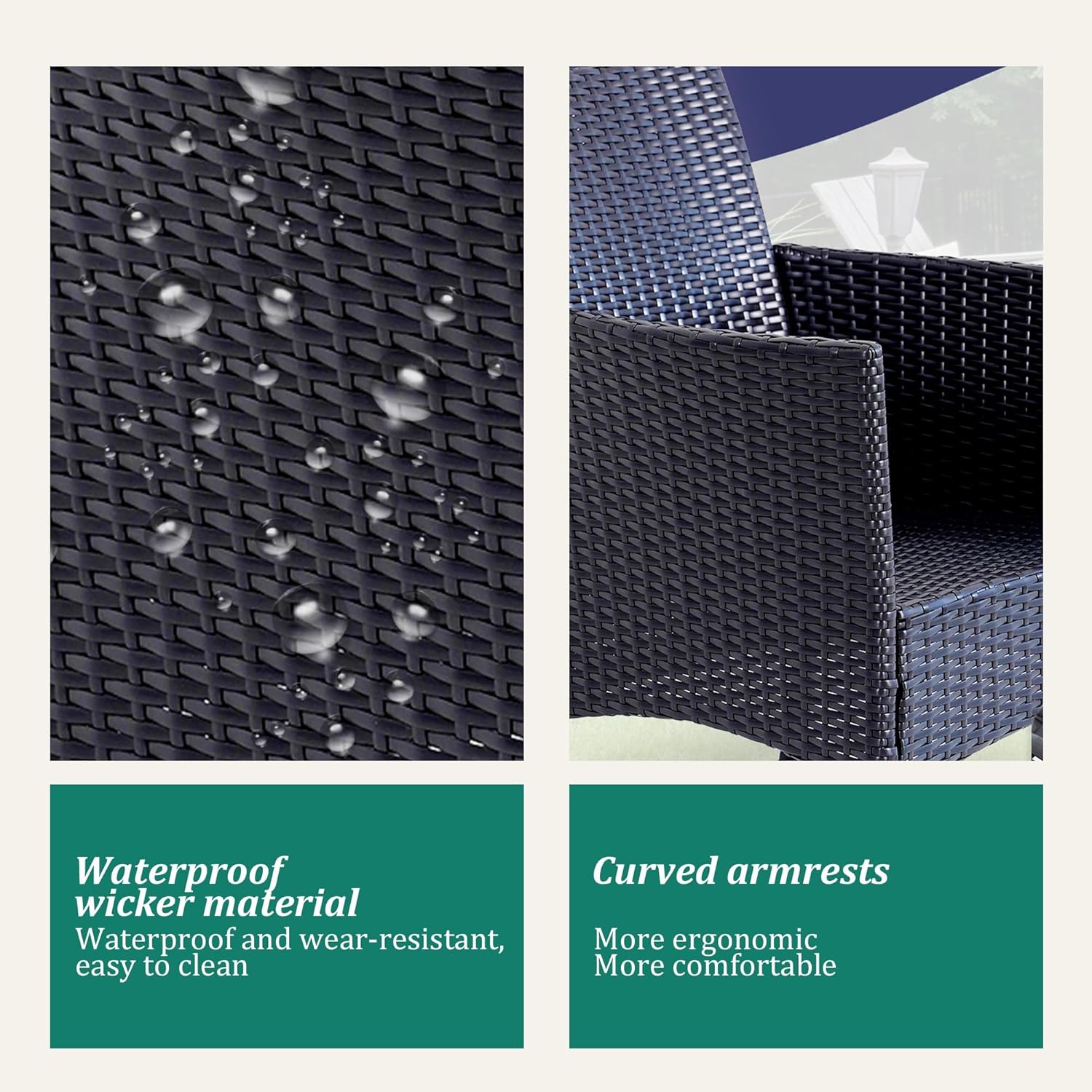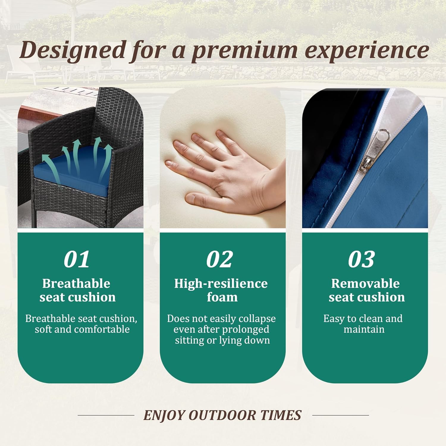 - 【Complete 3-Piece Set】 Includes 5 main furniture (1 Coffee Table + 2 Chairs + 2 Seat Cushions). Everything needed for instant outdoor living