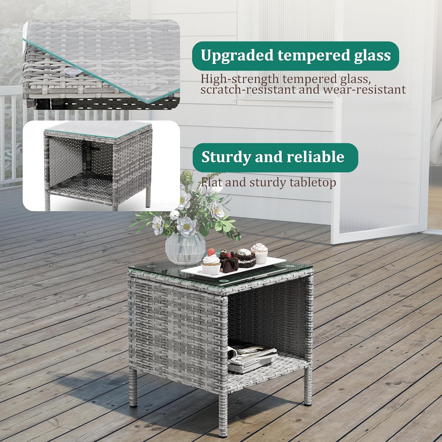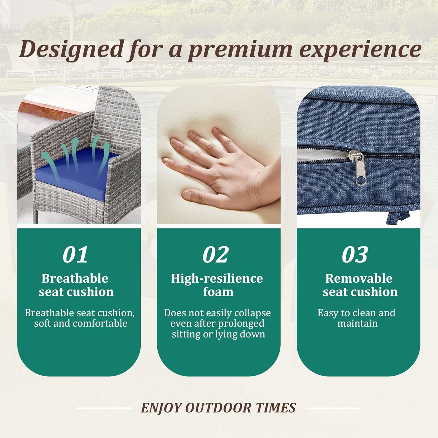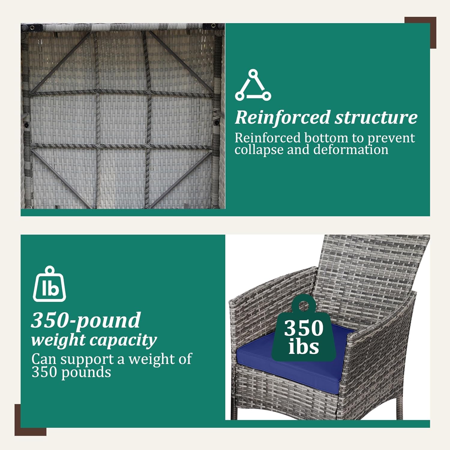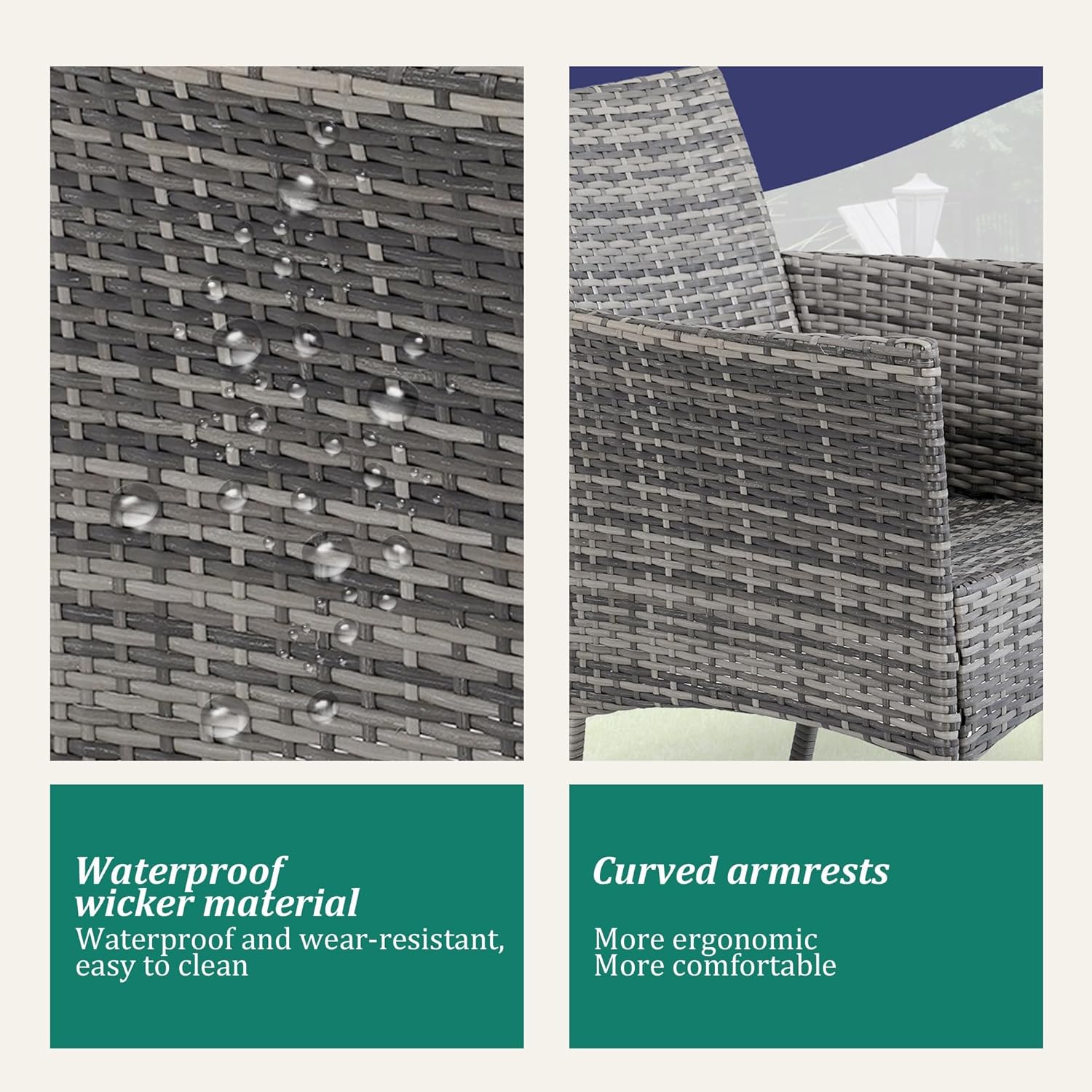 - 【Complete 3-Piece Set】 Includes 5 main furniture (1 Coffee Table + 2 Chairs + 2 Seat Cushions). Everything needed for instant outdoor living