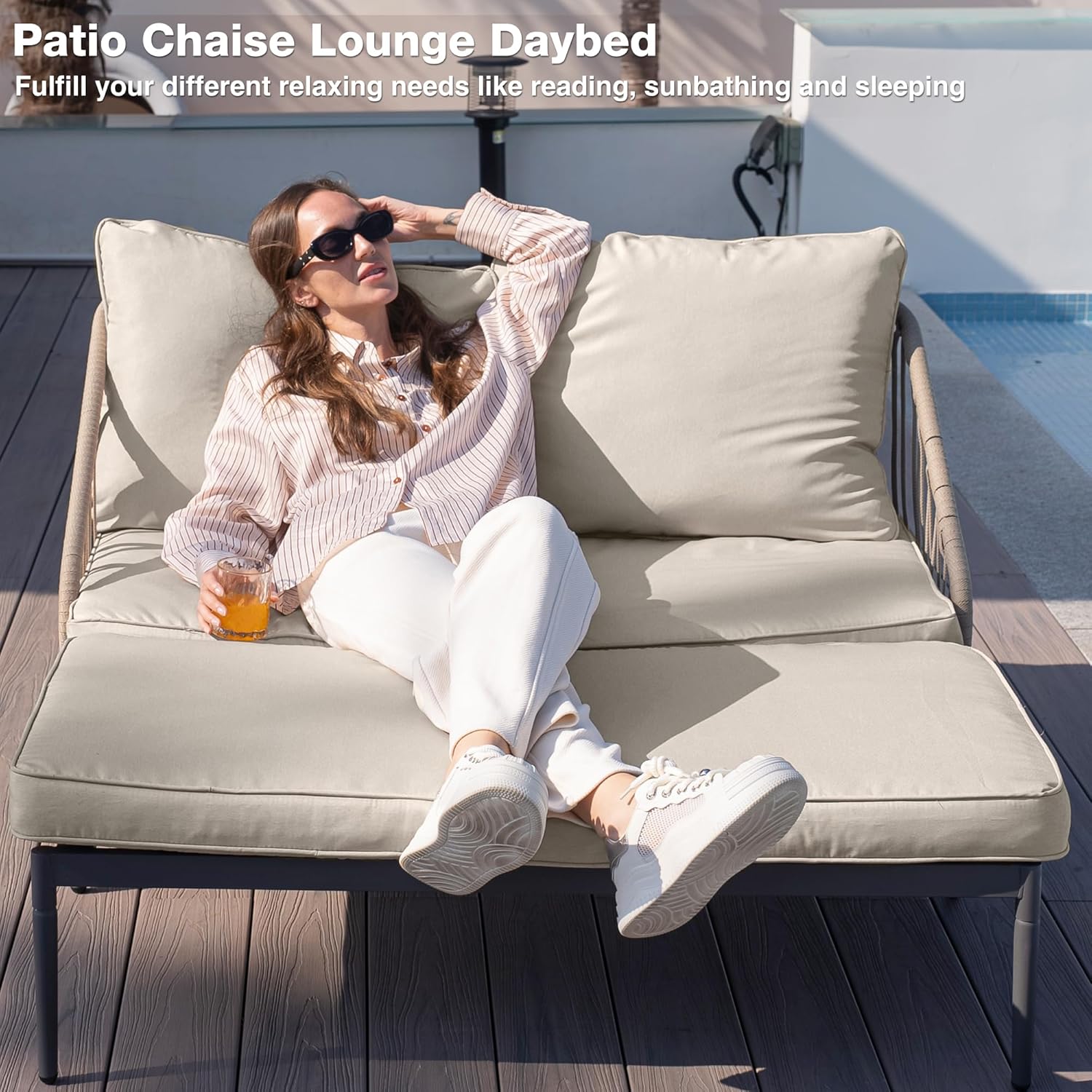 - Durable and Sturdy Frame: This Patio Daybed features thickened metal frame for rustproof and seat & backrest by woven Rope for Bohemian stylish look. This outdoor sunbed is rated to hold 600 lbs. All fabric is water-resistant & tear-resistant