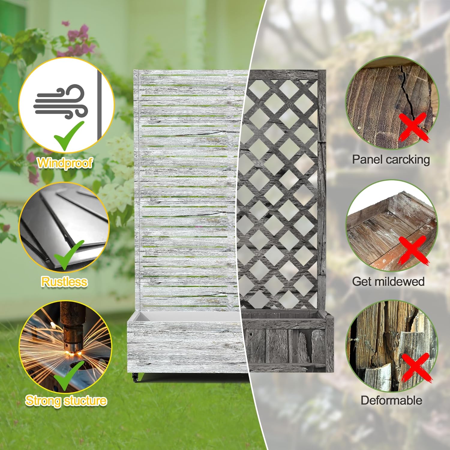 - 【Space-Saving Design】The combination of the planter box and trellis saves space while offering an attractive garden bed. This space-efficient solution is ideal for gardening enthusiasts facing space constraints, allowing them to cultivate beautiful gardens even in limited areas.