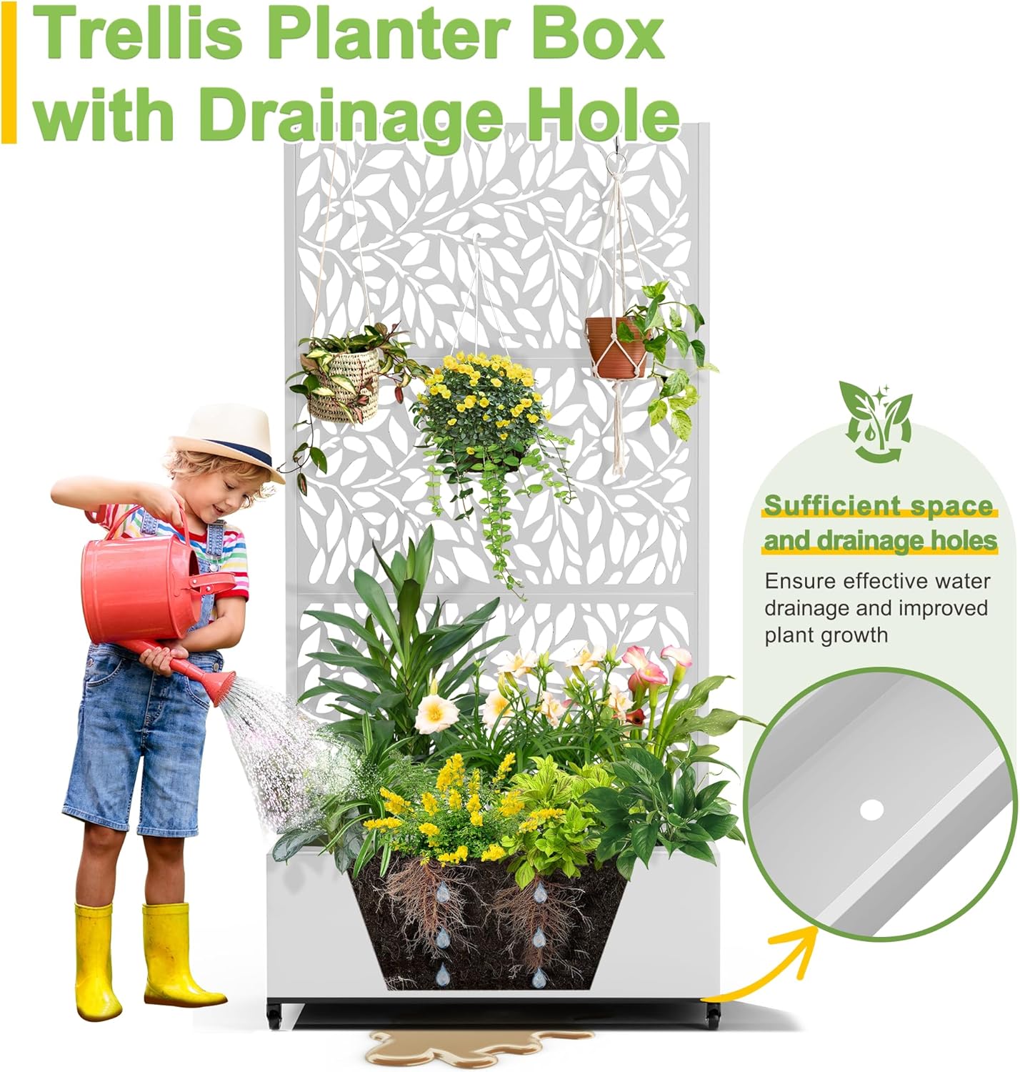 - 【Planter Box with Drainage Hole】Designed with a 12” deep planting bed and equipped with drainage holes at the bottom, this planter box provides ample space for healthy plant growth, ensuring excess water can escape and preventing waterlogging.