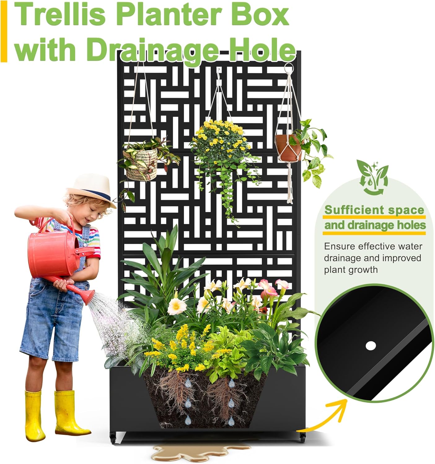 - 【Planter Box with Drainage Hole】Designed with a 12” deep planting bed and equipped with drainage holes at the bottom, this planter box provides ample space for healthy plant growth, ensuring excess water can escape and preventing waterlogging.
