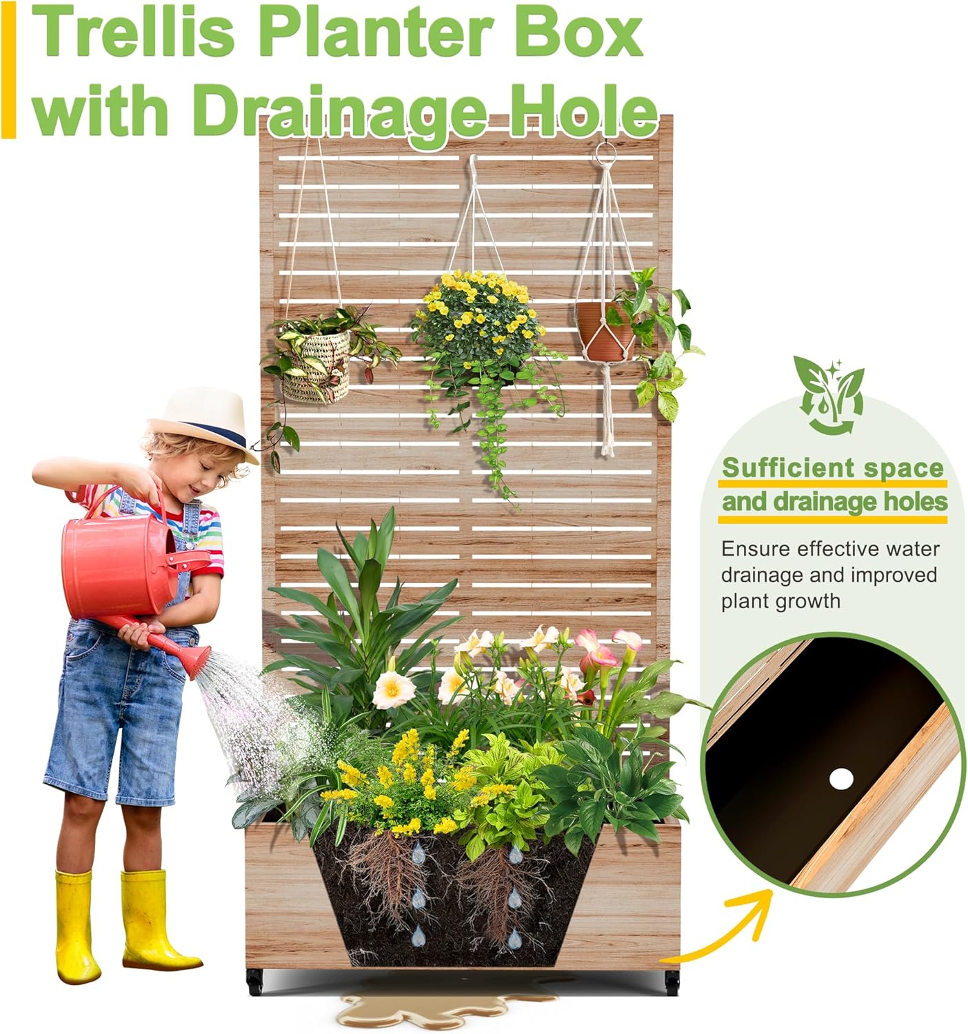 - 【Planter Box with Drainage Hole】Designed with a 12” deep planting bed and equipped with drainage holes at the bottom, this planter box provides ample space for healthy plant growth, ensuring excess water can escape and preventing waterlogging.