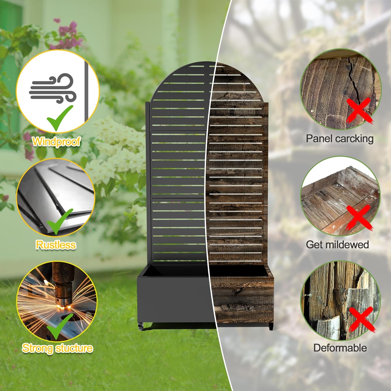- 【Space-Saving Design】The combination of the planter box and trellis saves space while offering an attractive garden bed. This space-efficient solution is ideal for gardening enthusiasts facing space constraints, allowing them to cultivate beautiful gardens even in limited areas.