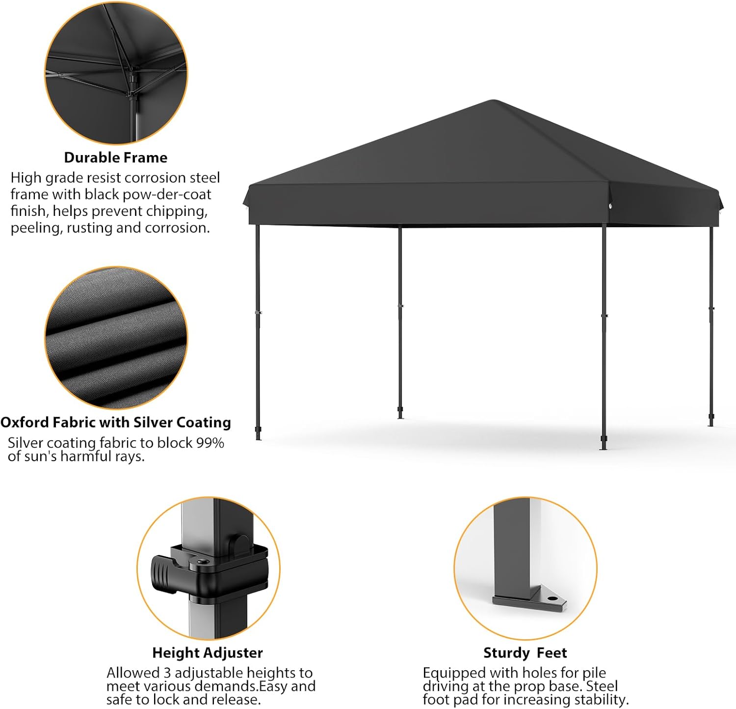 - 【Adjustable Height】Push buttons at the 4 legs to adjust the instant tent to different height positions. An ideal shade solution for your next day of fun in the sun. (Each tent comes with ground nail stakes to help hold down your canopy stably on a pretty windy day.)
