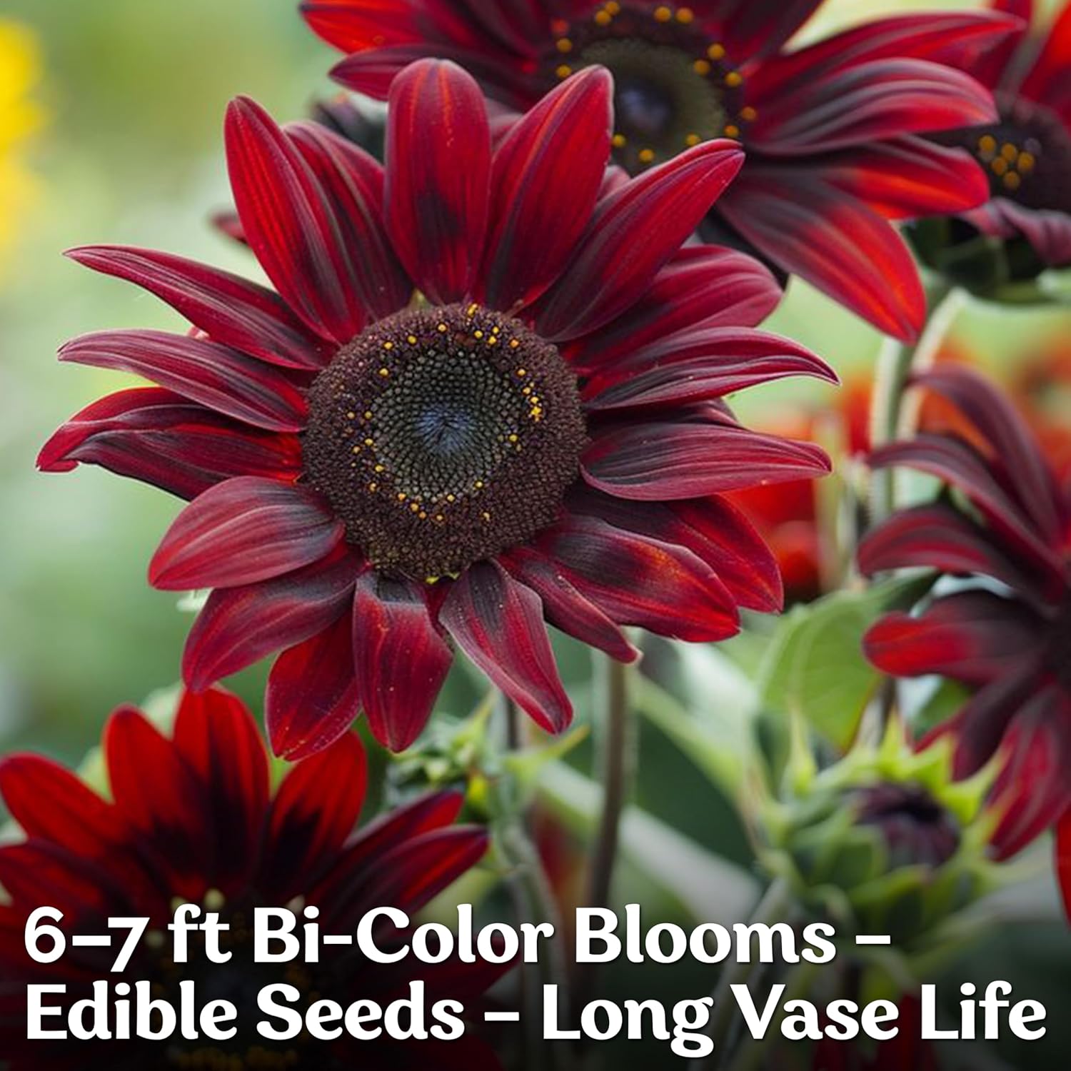- High Germination & Towering Beauty: chocolate cherry sunflower seeds for planting sprout in 7–14 days at 60–75 °F, then reach 6–7 ft with 5–8 in blooms—great sun flower seeds to plant outside, cut-flower beds, sunflower seeds to eat & sunflower seeds for birds.