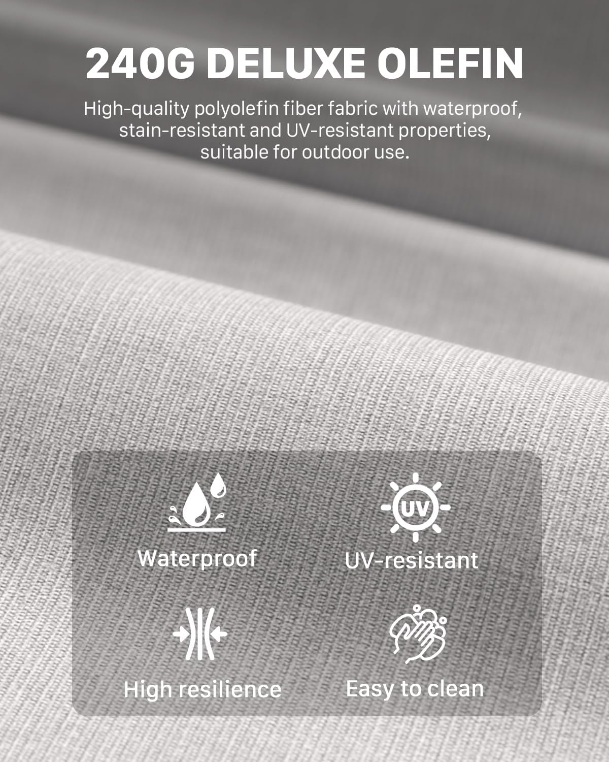 - ⛱️【6" Removable & Machine-washable Seat Cushion】 This outdoor furniture's cushion covers are removable and machine-washable, making cleaning effortless and keeping your set looking like new. Seat cushion of the set comes with high-density sponge, better for upper-body support, cushions are designed to be stable, keeping them from sliding around.