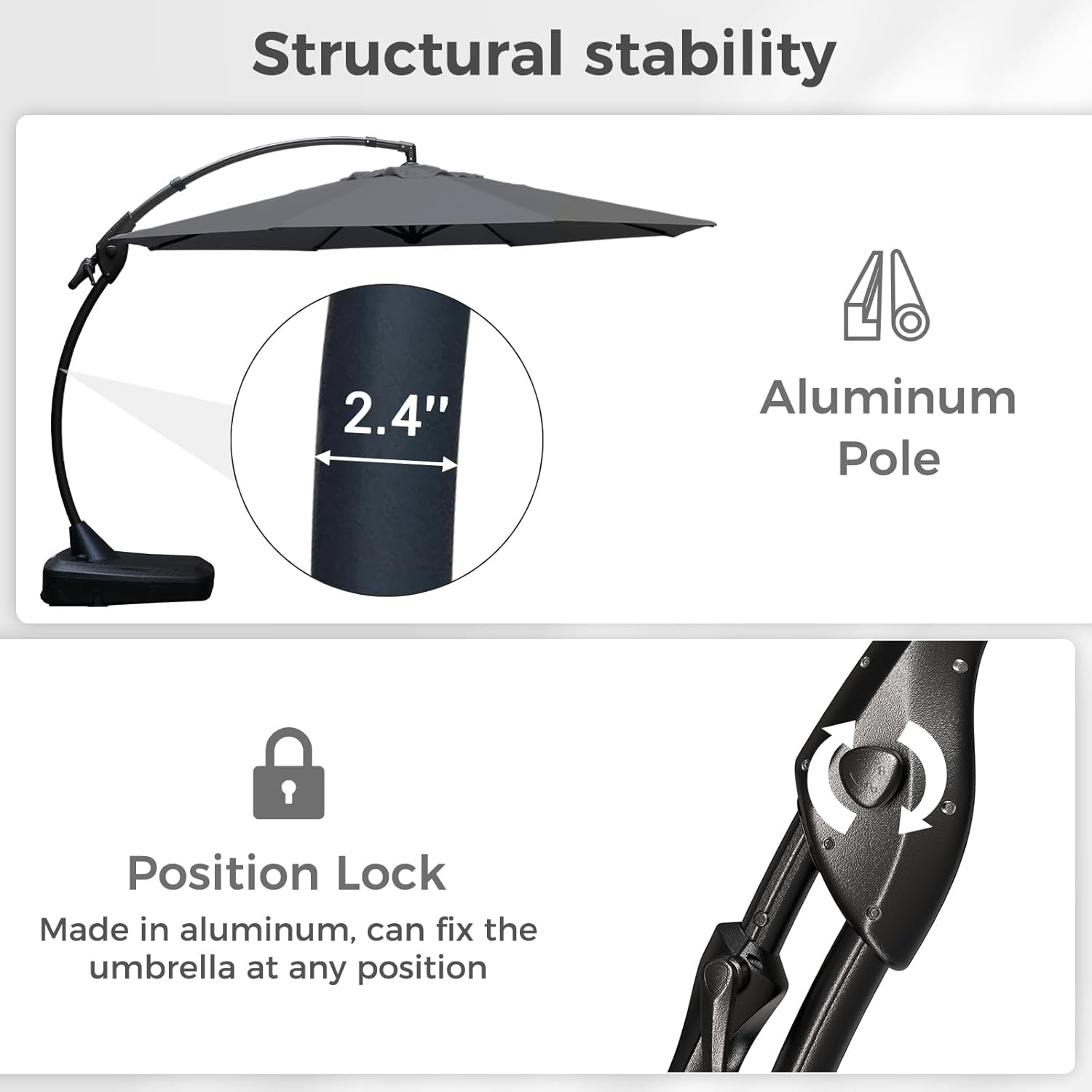 Grand patio 12 FT Sunbrella Cantilever Umbrella with Base Outdoor Aluminum Offset Umbrella with Tilt Adjustment (Charcoal, 12 FT-SUNBRELLA)