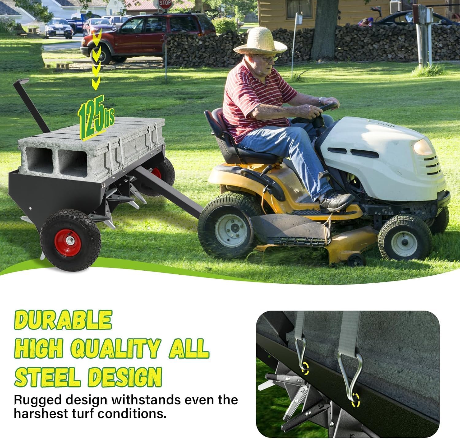 - 【Weighted Tray】-Featuring a sturdy weighted tray,side panels and solid steel shafts with an all-steel design, that can hold up to 125lbs of additional weight,which ensures durability and reliability,you can add cement blocks or other weights at the tow spike aerator as needed to achieve maximum soil penetration.