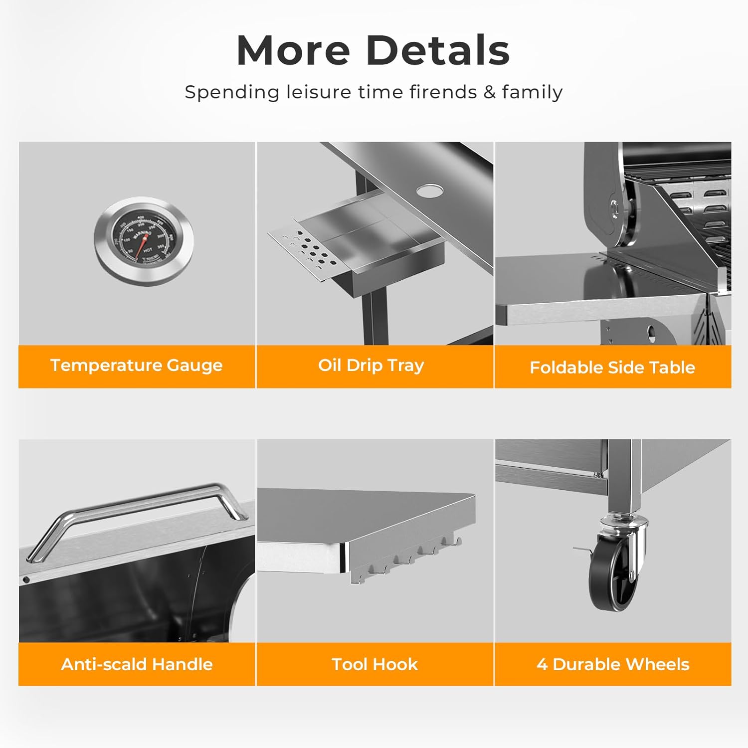 - Special Feature : Built-In Thermometer, Corrosion Resistant/ Rust Resistant/ Heavty Duty, Folding Side Table, Heat-Resistant Handle/ Tool Holder/ Tower Rack, Locking Caster, Non-Stick Surface/ Stainless Steel Warming Rack and Grate, Removable Grease Tray Built-In Thermometer, Corrosion Resistant/ Rust Resistant/ Heavty Duty, Folding Side Table, Heat-Resistant Handle/ Tool Holder/ Tower Rack, Locking Caster, Non-Stick Surface/ Stainle… See more