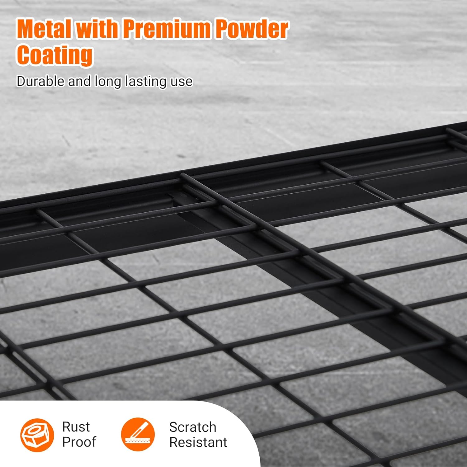 - 【Unmatched Heavy-Duty 2500LBS Capacity】Engineered with a solid steel frame and reinforced 0.157 inch thick wire mesh shelves, this garage shelving unit delivers an exceptional 2500-lb load capacity. The rolled-edge thickened columns and integrated support ribs ensure superior resistance to bending, warping, or breaking—making it built to handle even the heaviest tools and equipment with ease.
