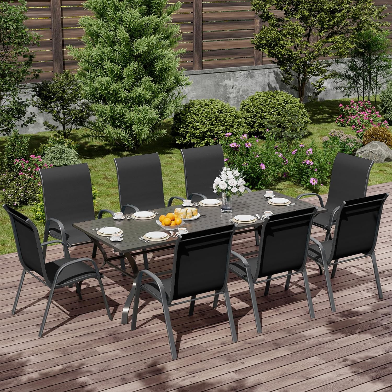 UDPATIO Patio Chairs Set of 8, Stackable Outdoor Dining Chairs with High Back, Breathable Textilene Fabric Outdoor Chair All Weather, 350LBS Capacity for Garden, Backyard (Black)