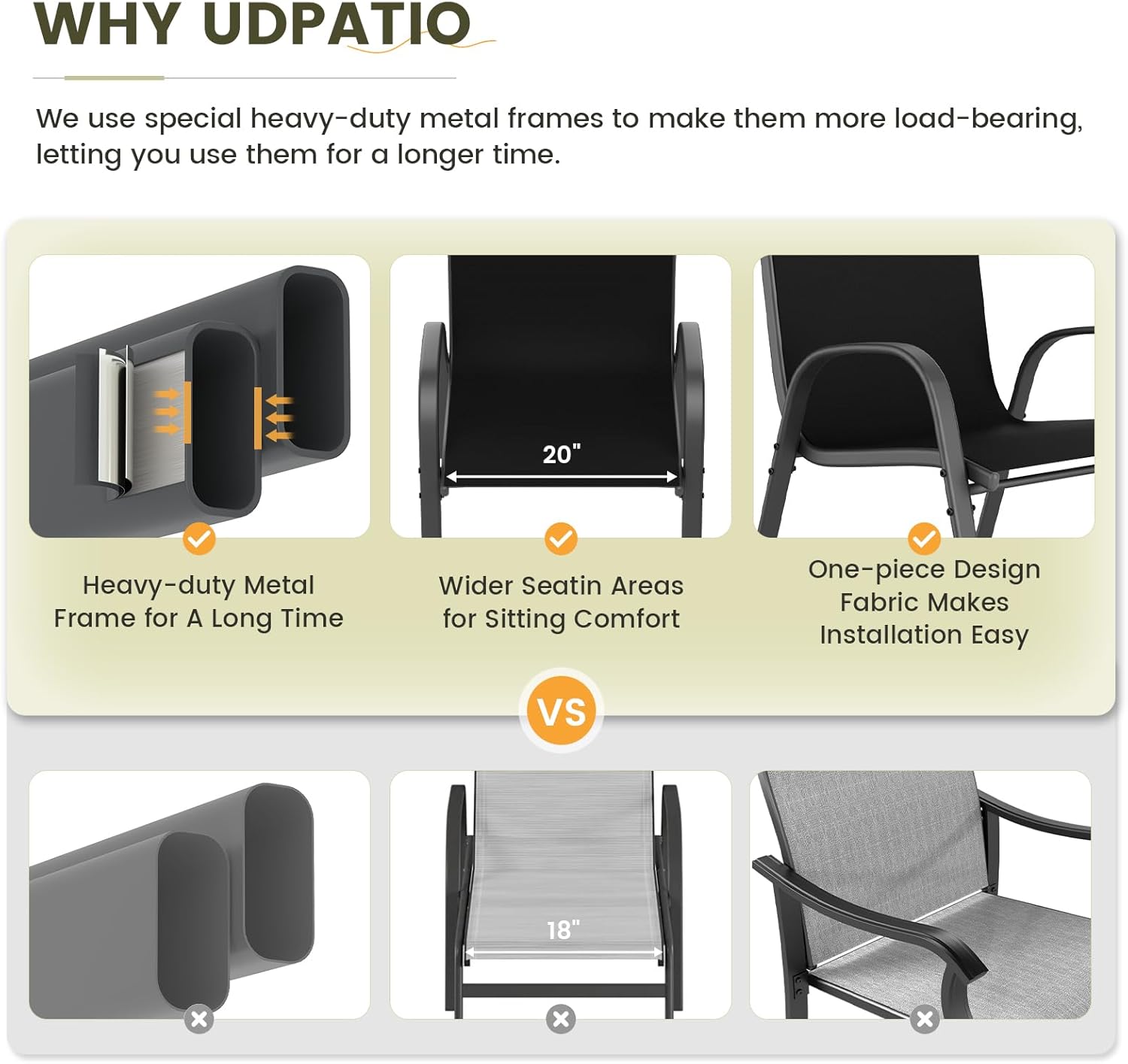 UDPATIO Patio Chairs Set of 4, Stackable Outdoor Dining Chairs with High Back, Breathable Textilene Fabric Outdoor Chair All Weather, 350LBS Capacity for Garden, Backyard (Black)
