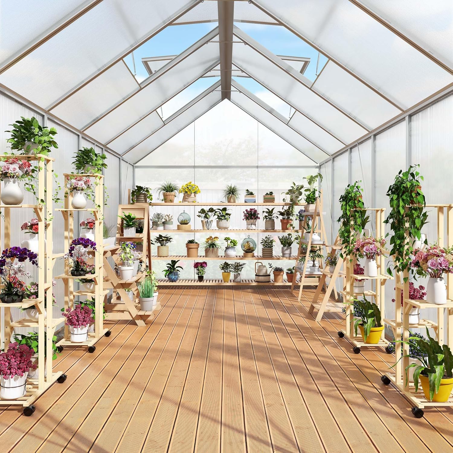 - ALL SEASON GREENHOUSE: Top tilt angle design of the polycarbonate aluminum greenhouse helps to achieve effective wind resistance and drainage capacity; This beautiful and convenient product is good for gardens, decks, and backyards for year-round plant cultivation and protection