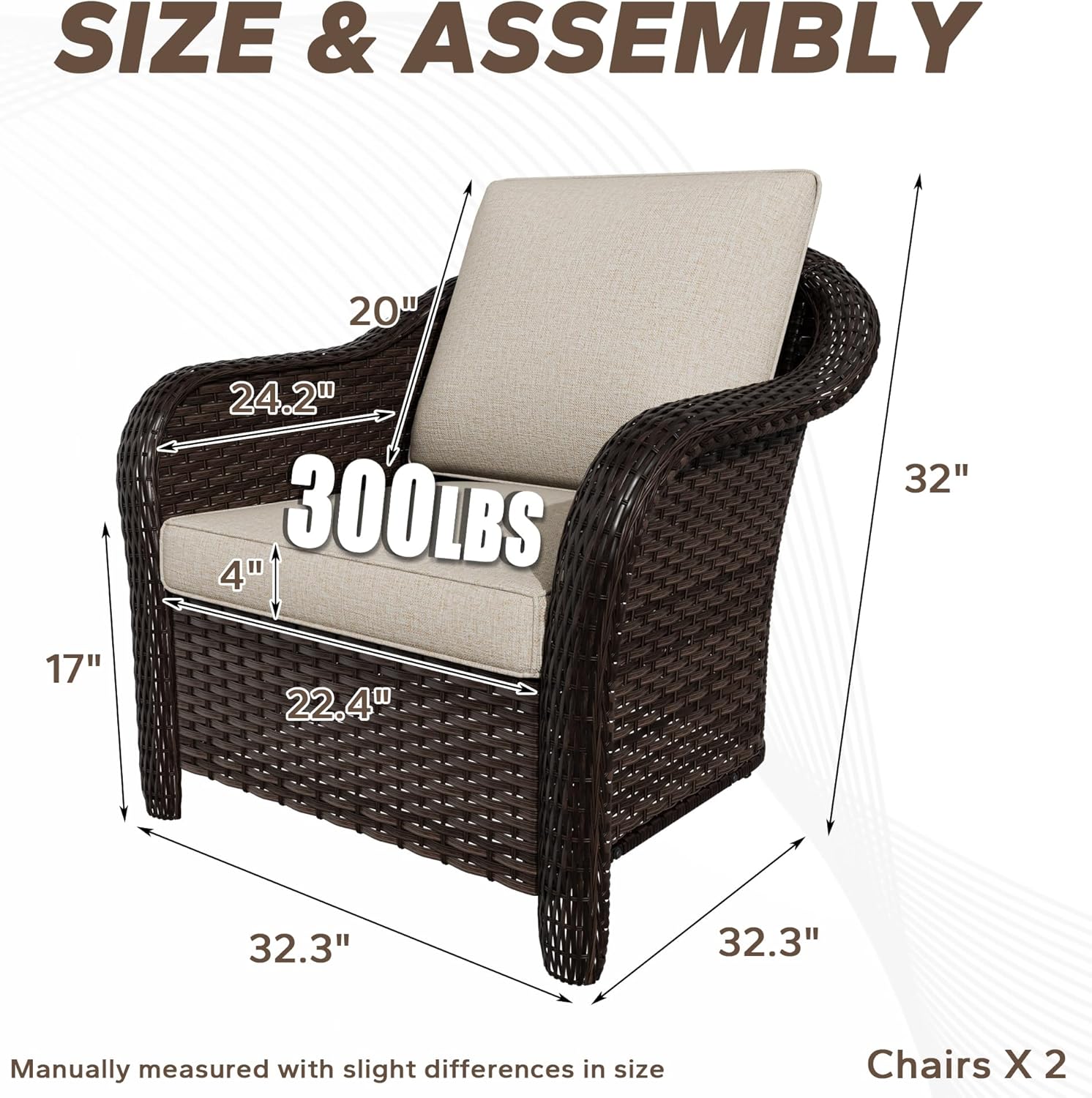 Patio PE Rattan Chairs Set of 2, All-Weather & Steel Frame Outdoor Conversation Furniture Set with Washable Cushions for Garden, Bistro, Deck, Yard (Beige)