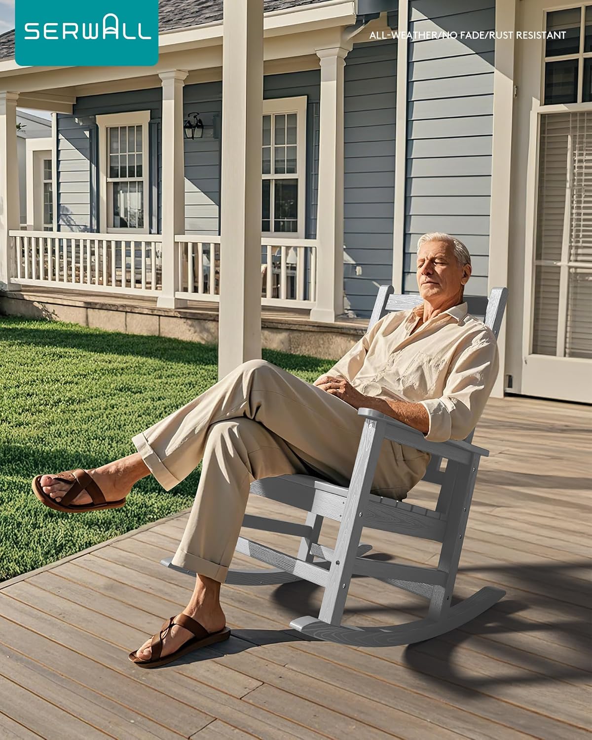 SERWALL Oversized Outdoor Rocking Chair Set of 2, HDPE Rocker for Adults, Patio Rocking Chairs for Porch, Sliver Gray