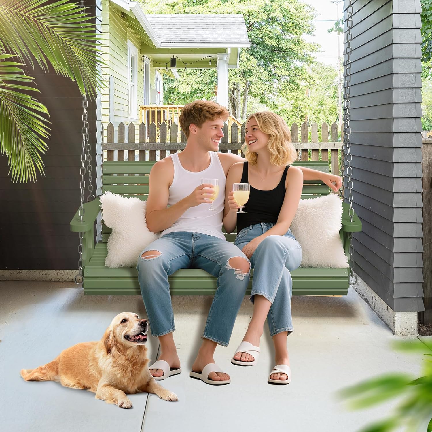 VINGLI Upgraded Patio Wooden Porch Swing for Courtyard & Garden, Heavy Duty 880 LBS Swing Chair Bench with Hanging Chains for Outdoors (Green, 4 FT)