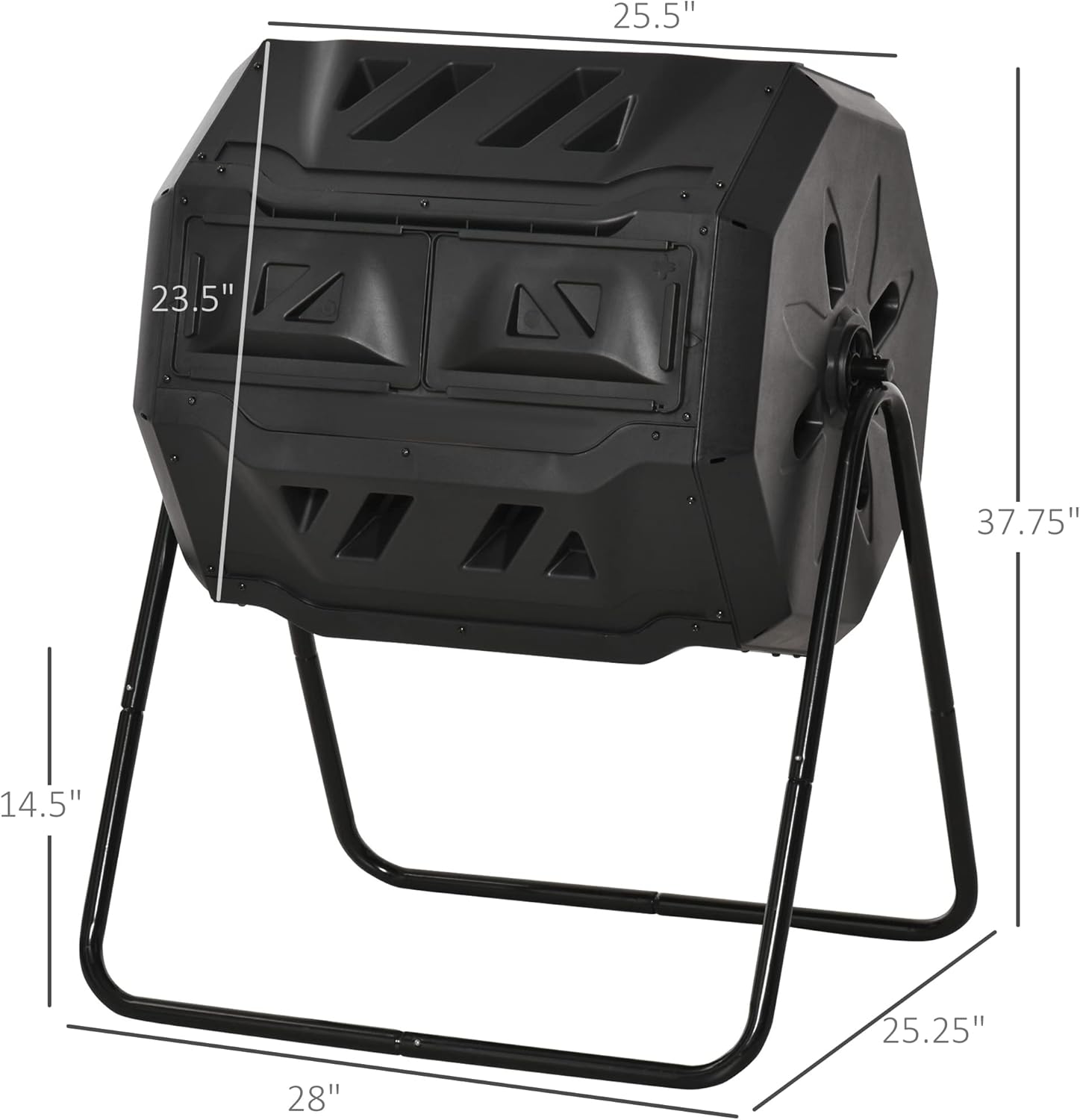 Compost Bin Outdoor, 43 Gallon Dual Chamber Tumbling Composting with Sliding Doors, Large Compost Tumbler, Compost Bin for Garden, Kitchen, and Yard Waste, Black