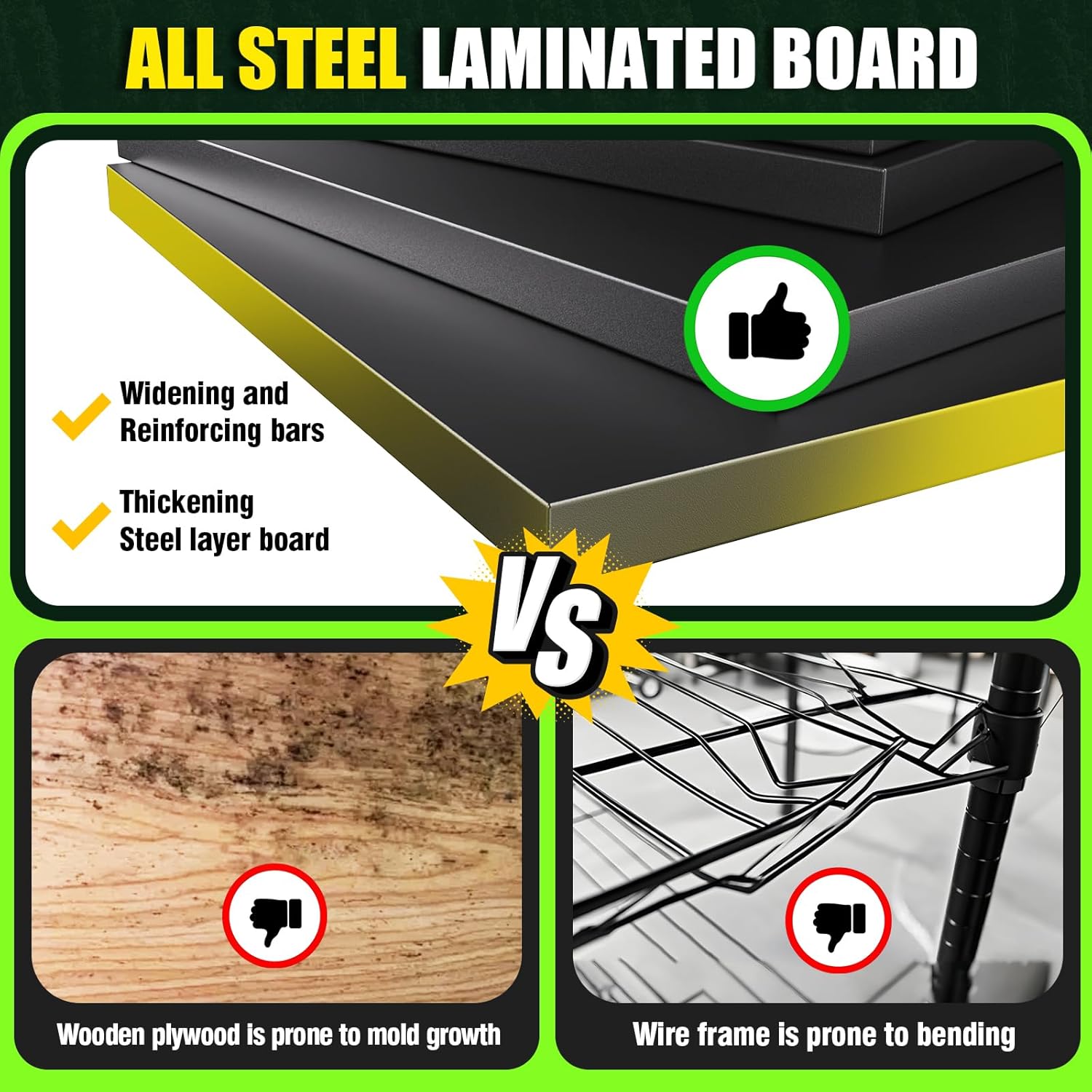 - 【Ultra-strong load-bearing】This garage shelves is made of high quality cold rolled steel, strictly selected and carefully processed to make this metal storage shelving. Whether you are storing heavy goods or daily necessities, you can ensure that the long-term use will not be deformed. This garage shelving has gone through a lot of load-bearing tests, easily face all kinds of storage needs, and provide reliable support for your items!